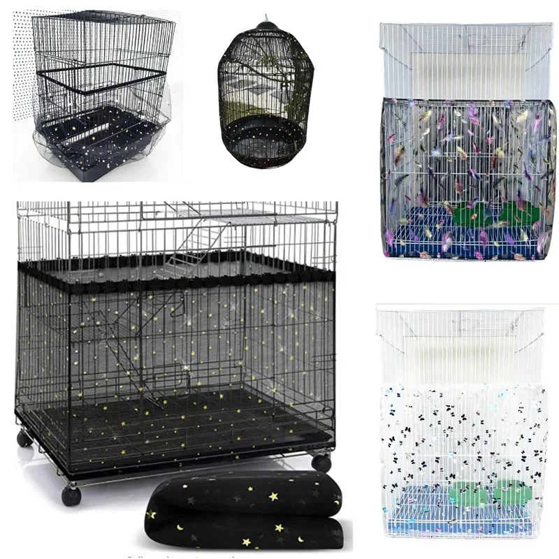 Universal Bird Cage Cover 360 Degrees Covering Bird Cage Mesh Net Elastic Birdcage Cover Soft Bird Seed Guard Skirt For Home