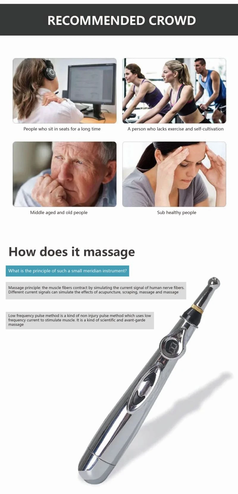 Experience the benefits of traditional Chinese medicine combined with modern biotechnology using the Electronic Acupuncture Pen. Designed to stimulate acupuncture points without puncturing the skin, this safe and effective device helps relieve pain, improve circulation, and promote overall wellness. Ideal for personal or professional use, it’s an affordable and portable solution for acupressure therapy at home.