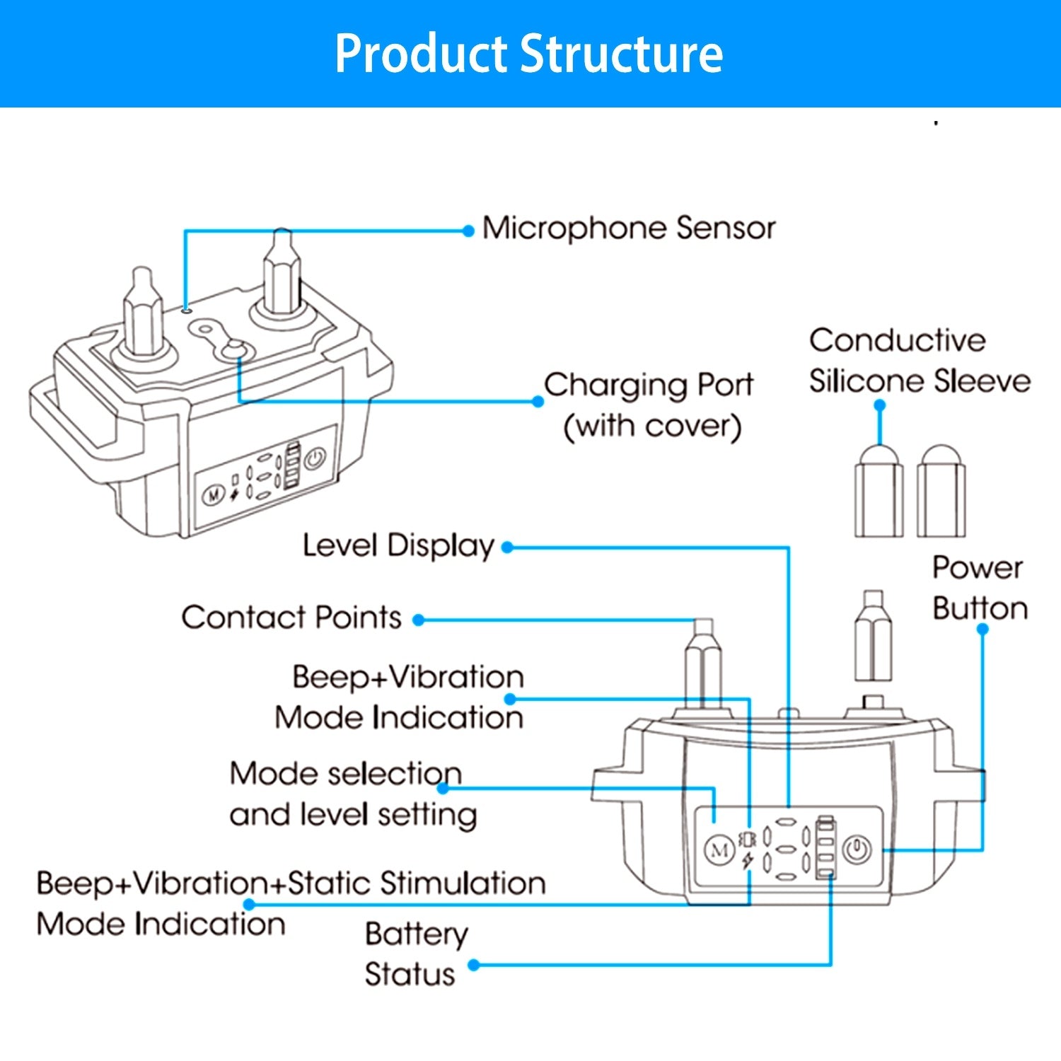 - Two Anti-Bark Modes: Cyclic (default) and Fixed modes with an LCD showing the current level. Six training levels (1–6) let you dial in the right intensity.