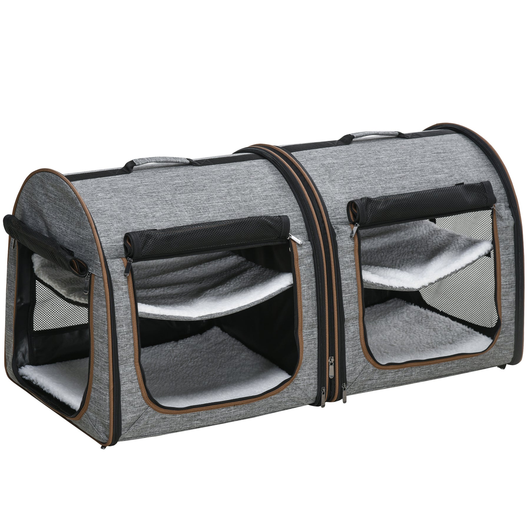 Portable Soft-sided Pet Cat Carrier With Divider, Two Compartments, Padded And Storage Bag, Grey