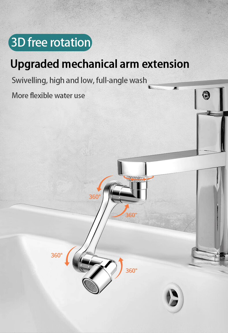 180° Universal Rotation Faucet Extender Dual Mode Sprayer Head Kitchen Robot Arm Extension Taps Bathroom Swivel Faucet