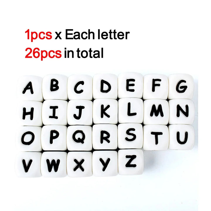Introducing our 10pcs 12mm Baby Silicone Letters Beads, a must-have accessory for nursing parents! These delightful alphabet beads are not just perfect for creating personalized pacifier clips but also serve as chewable teething toys for your little ones.