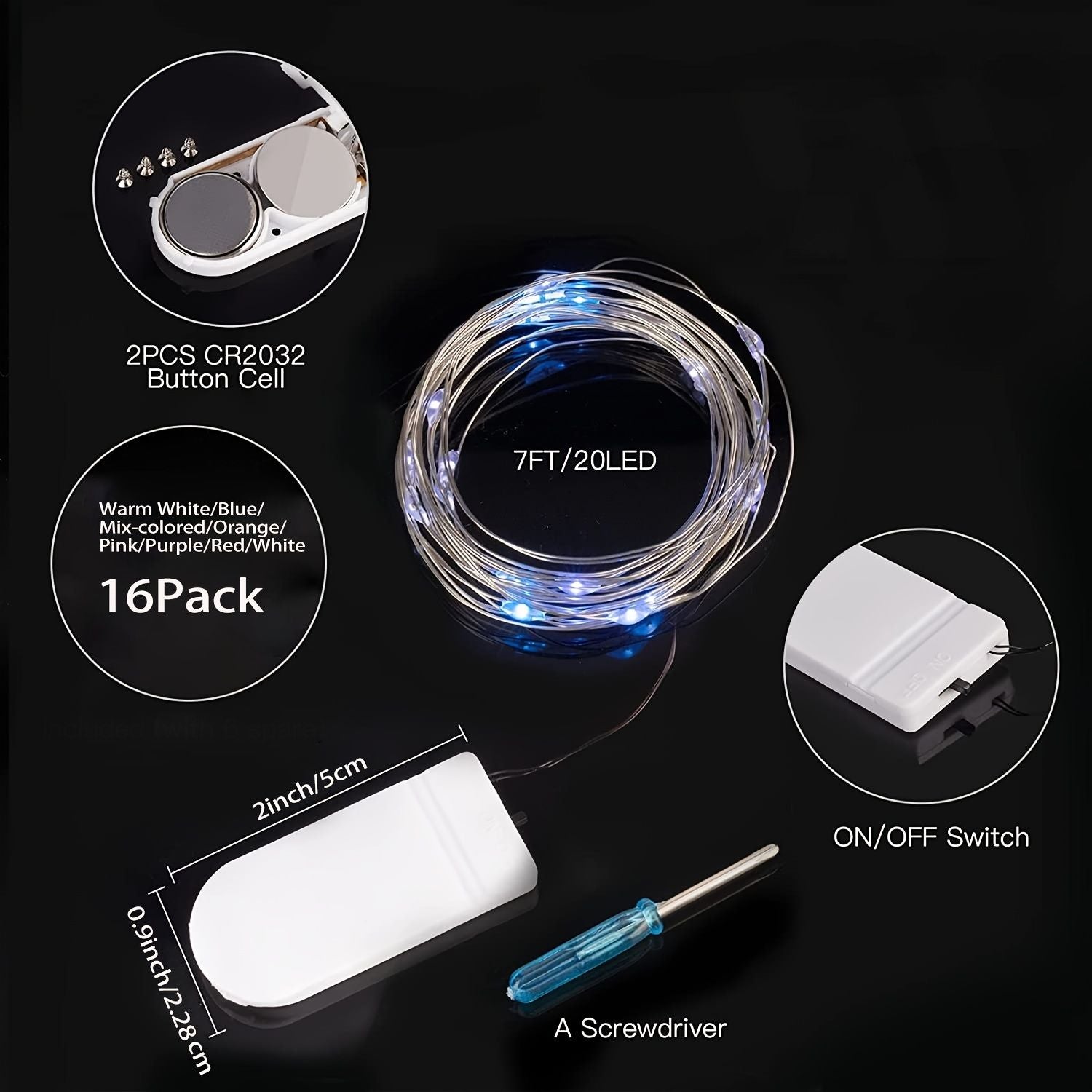 16 Pack Led Fairy Lights Battery Operated String Lights Waterproof Silver Wire 7 Feet 20 Led Firefly Starry Moon Lights For DIY Wedding Party Bedroom Patio Christmas