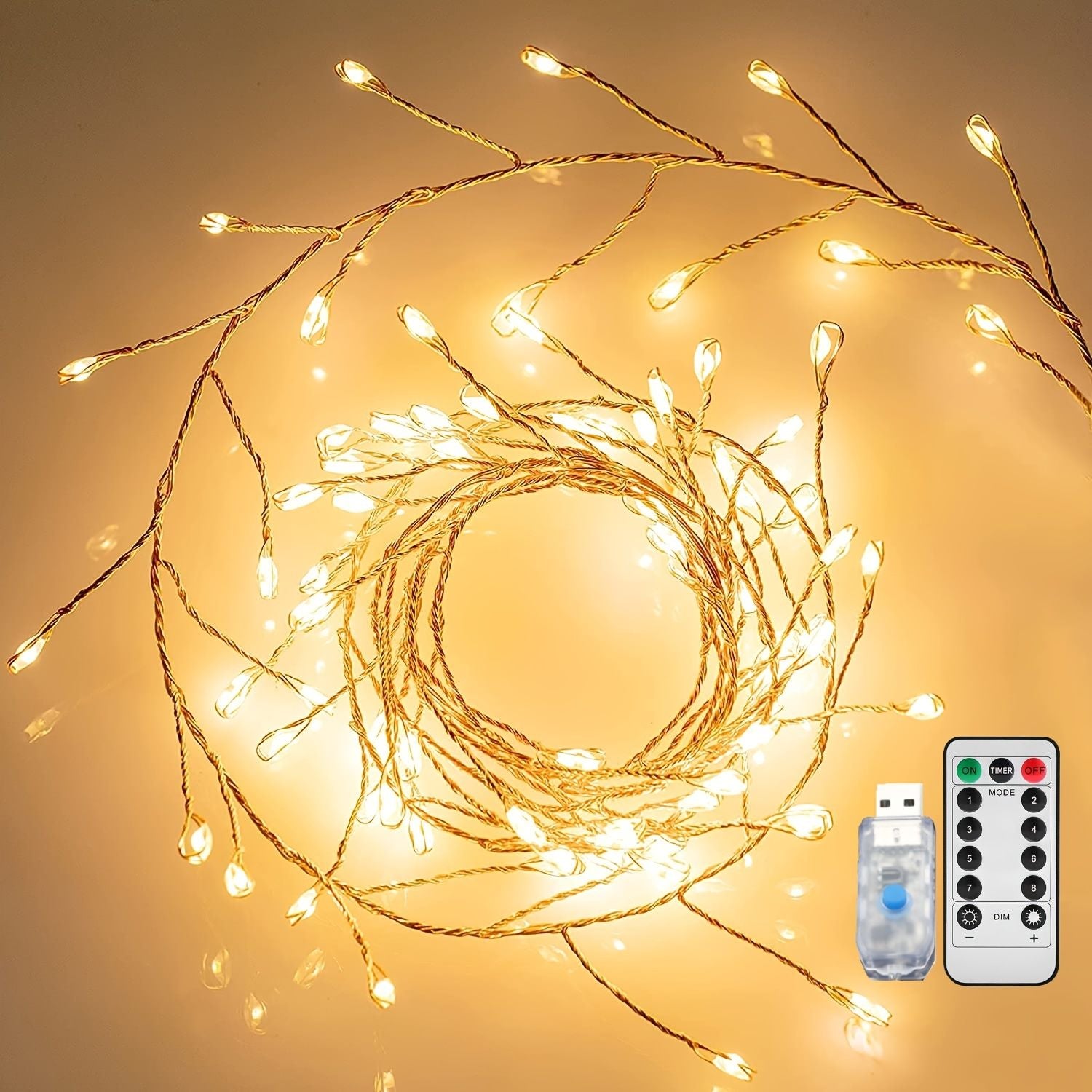 Fairy Lights Led Firecracker Lights 8 Twinkling Modes USB Remote with Timer Waterproof Cluster Starry String Lights for Christmas Tree Decoration Ceiling Bedroom Wreath Window Wedding Warm White Multicolor