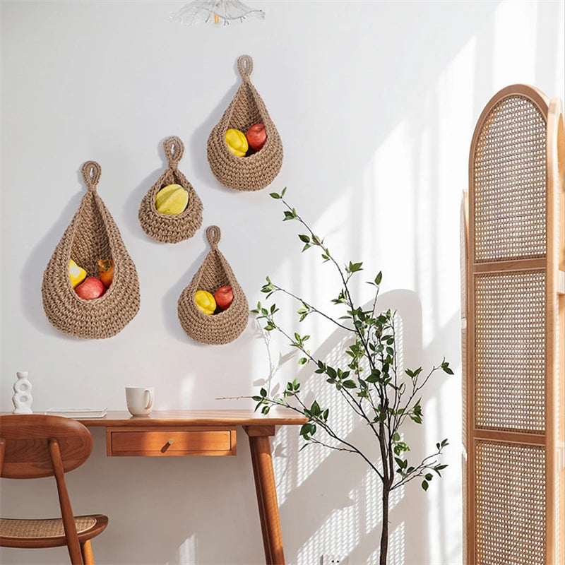 Elevate your home décor while keeping your kitchen organized with our stylish and functional Hanging Wall Vegetable and Fruit Baskets. Designed with a charming pastoral style, these eco-friendly baskets are perfect for showcasing your fresh produce and adding a touch of nature to your kitchen.