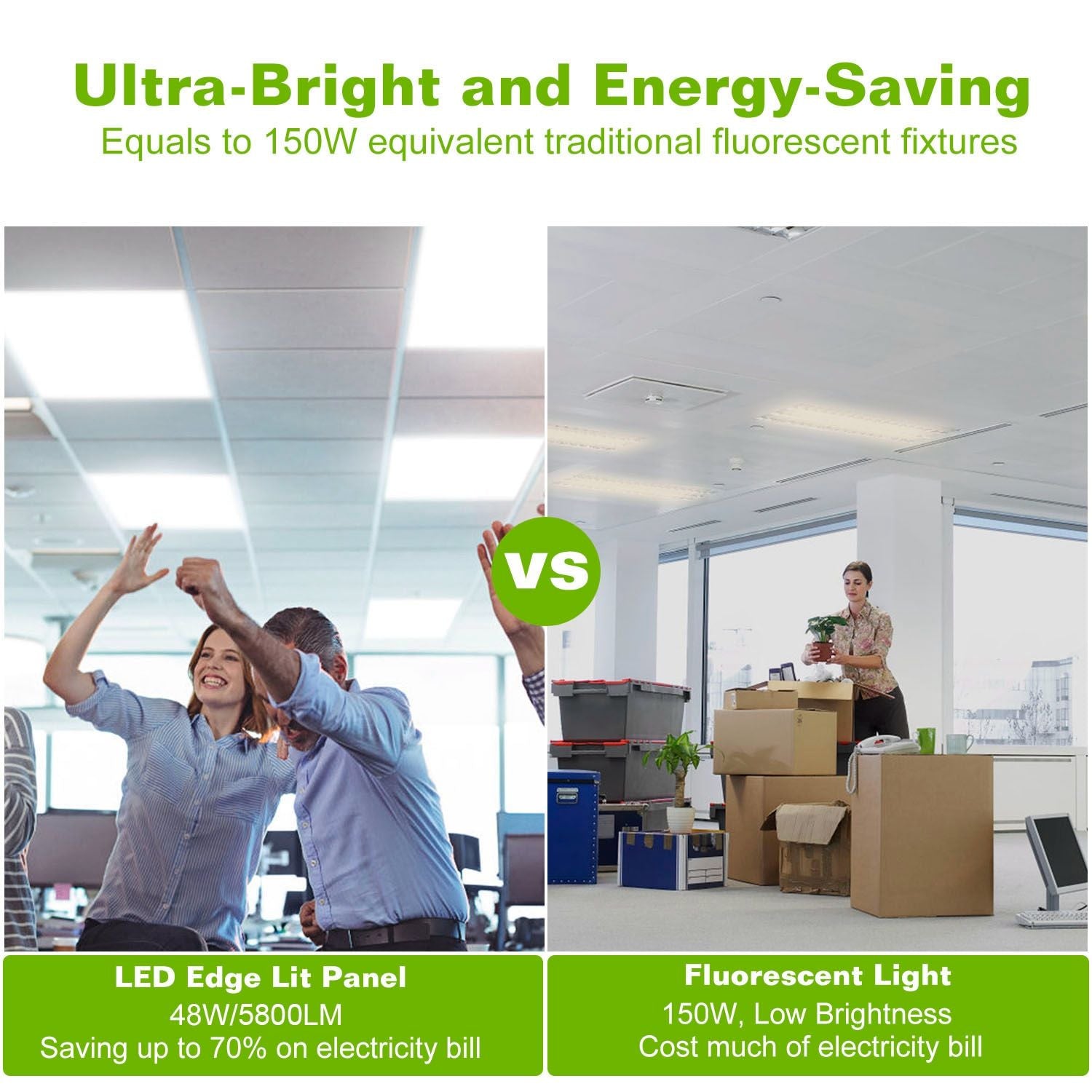 **Ultra-Bright and Energy-Saving*:Built-in 48pcs SMD4014 LEDs(0.2W/PC),our LED panel light offers total 48W excellent lighting effect equivalent to 150W traditional fluorescent fixtures,saves up to 70% on electricity bill.