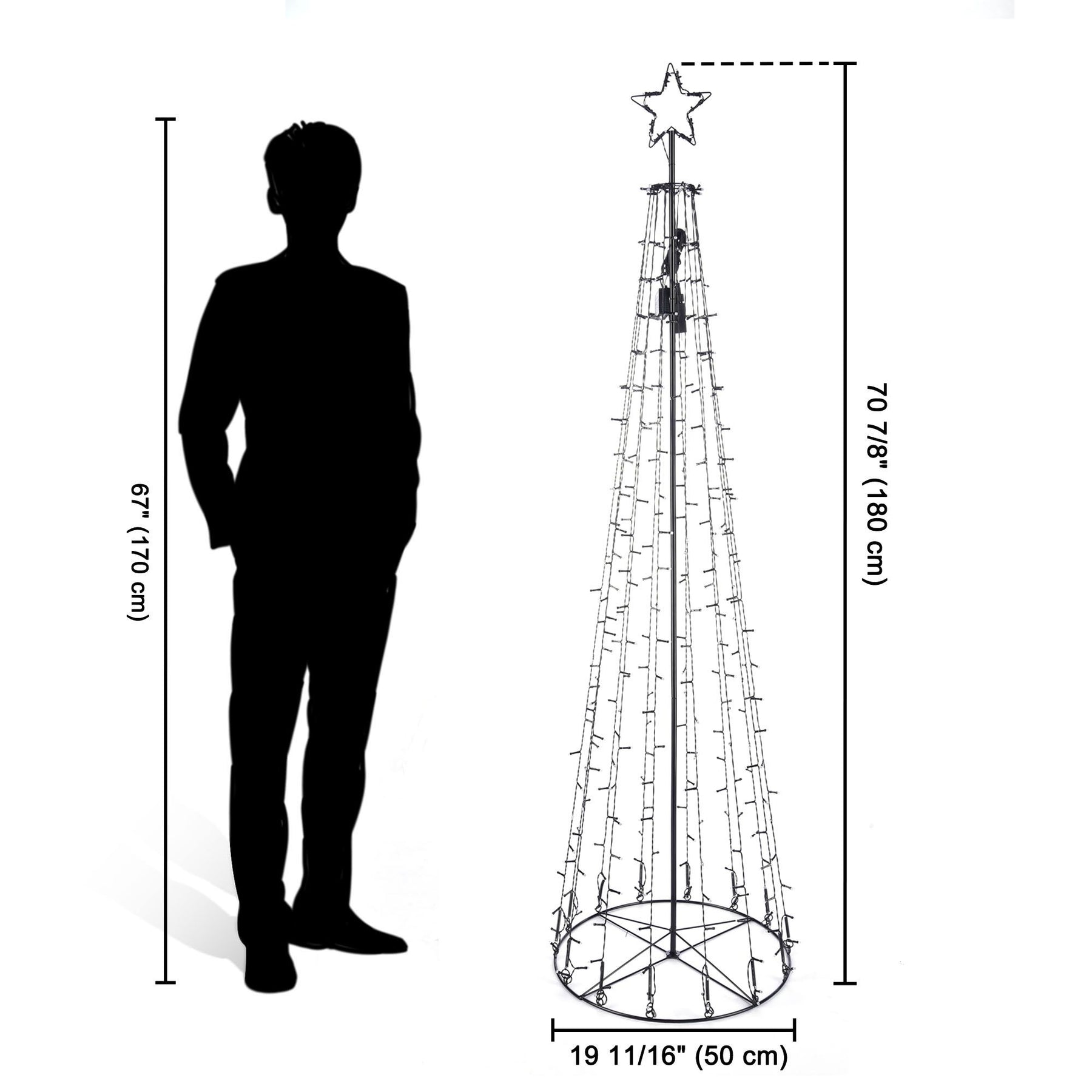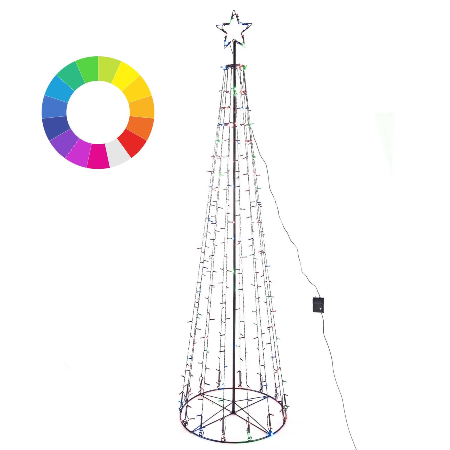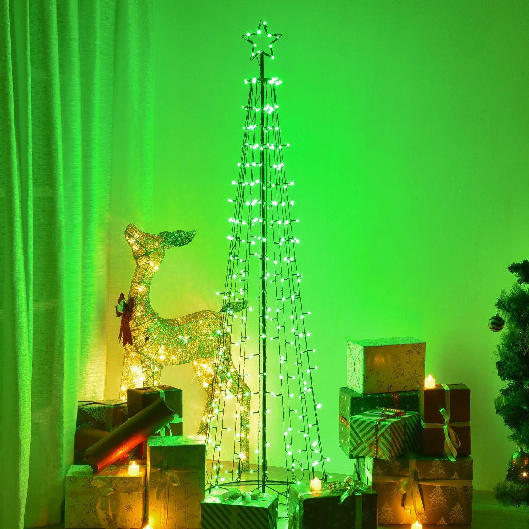 - Christmas Tree Decoration - 5 ft Cone Shaped Christmas Tree with lighted top star finial & 240 multi-color LED lights twinkling around the tree, adds dreamy atmosphere for indoor & outdoor space, great addition to Christmas winter wonderland style displays for living rooms, offices, bars, restaurants, parties