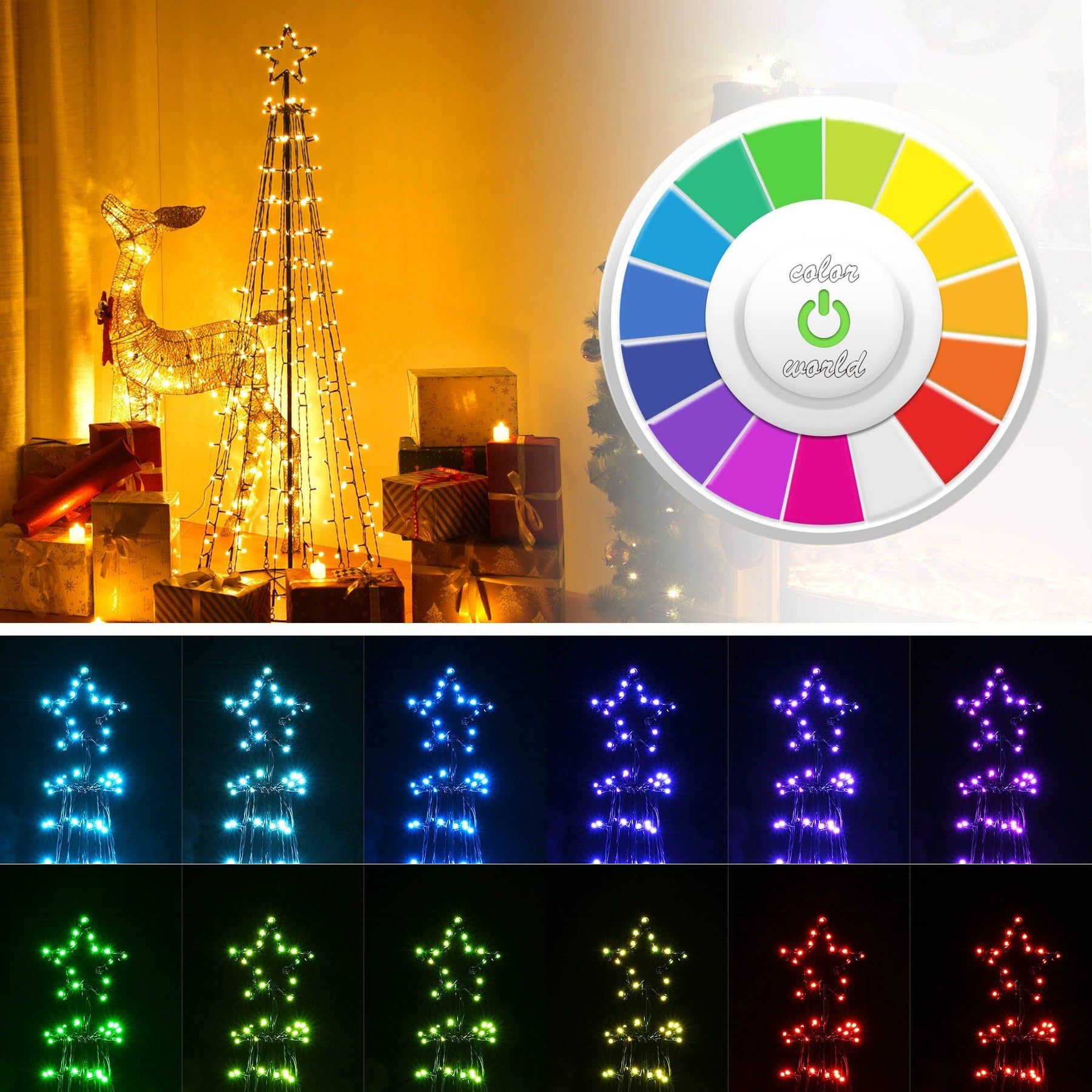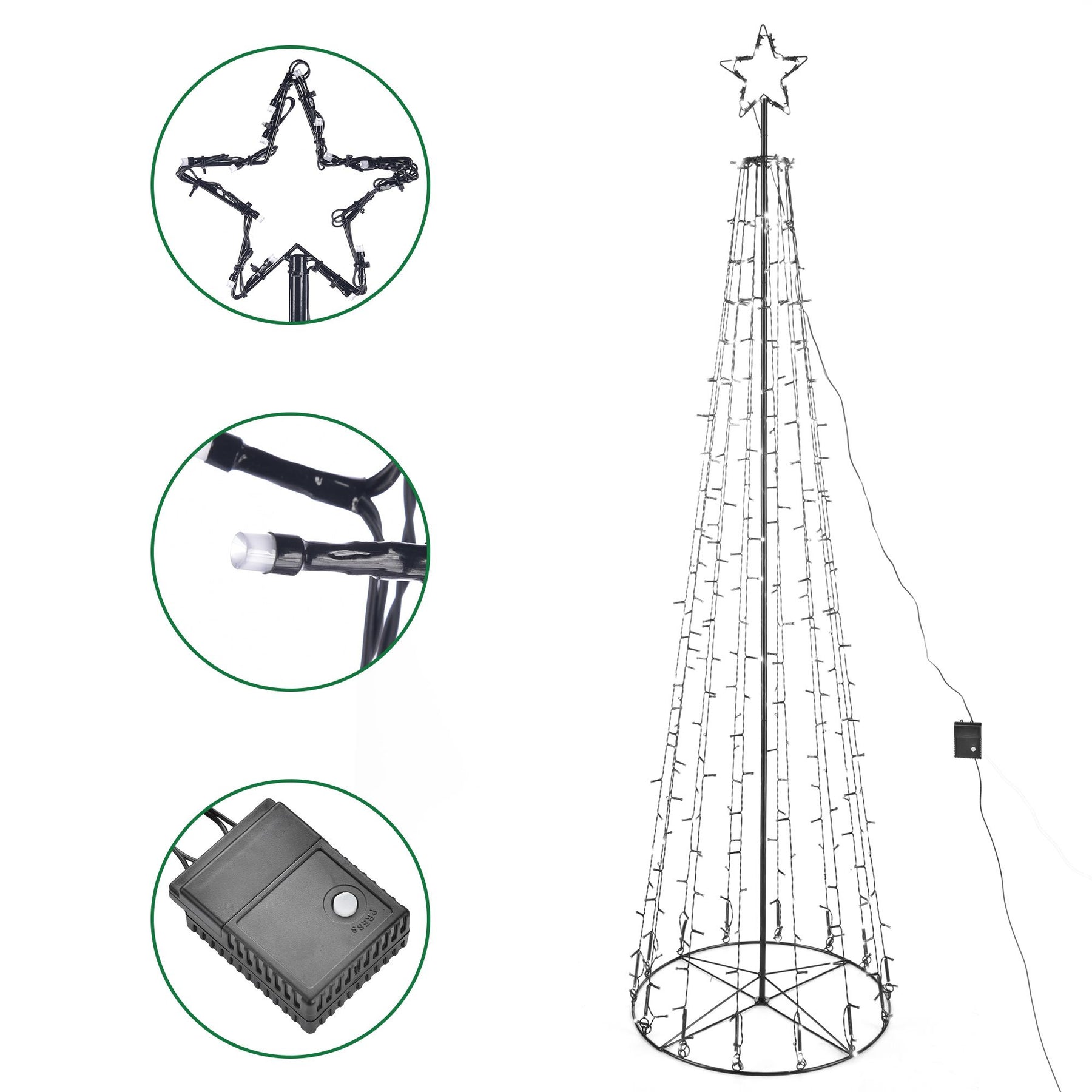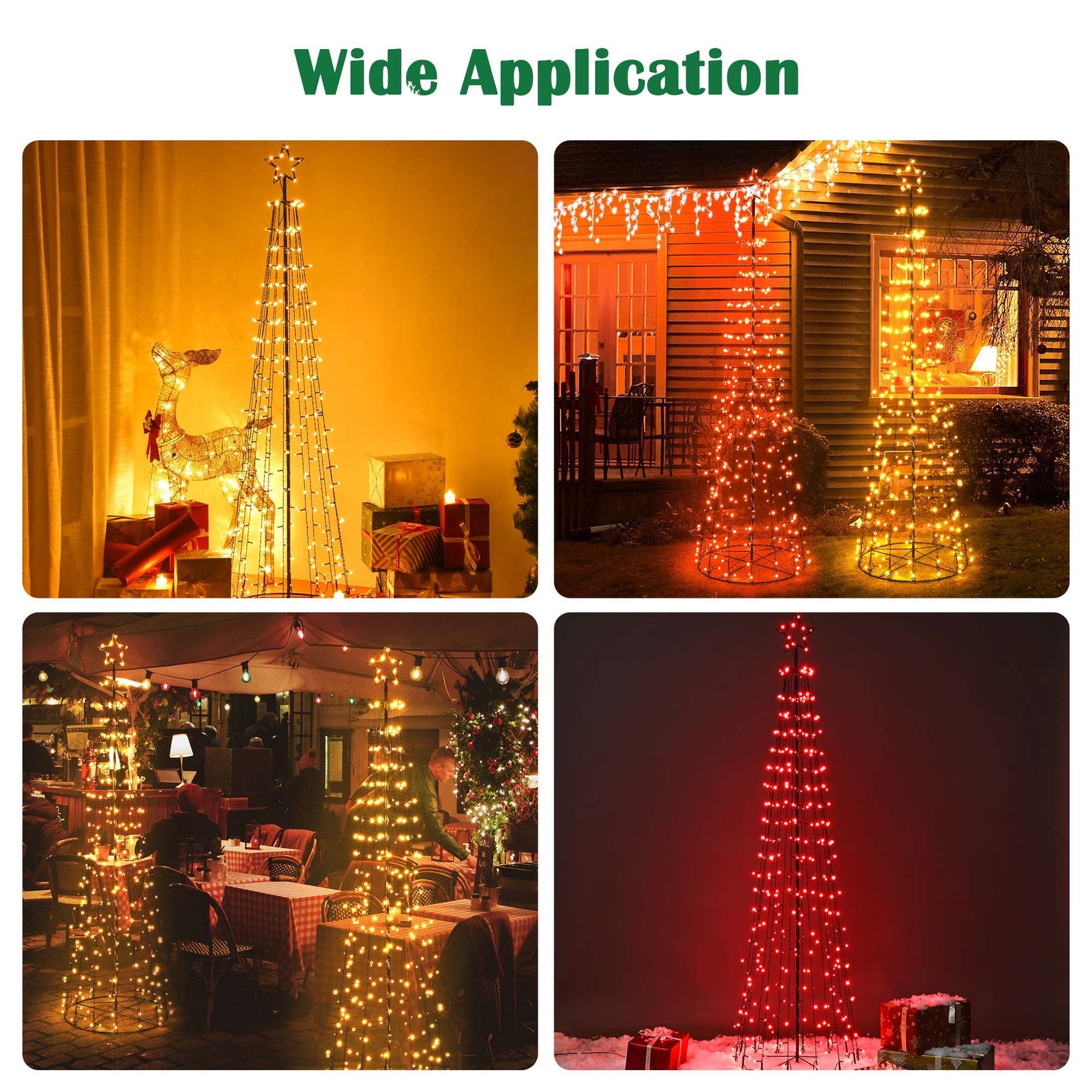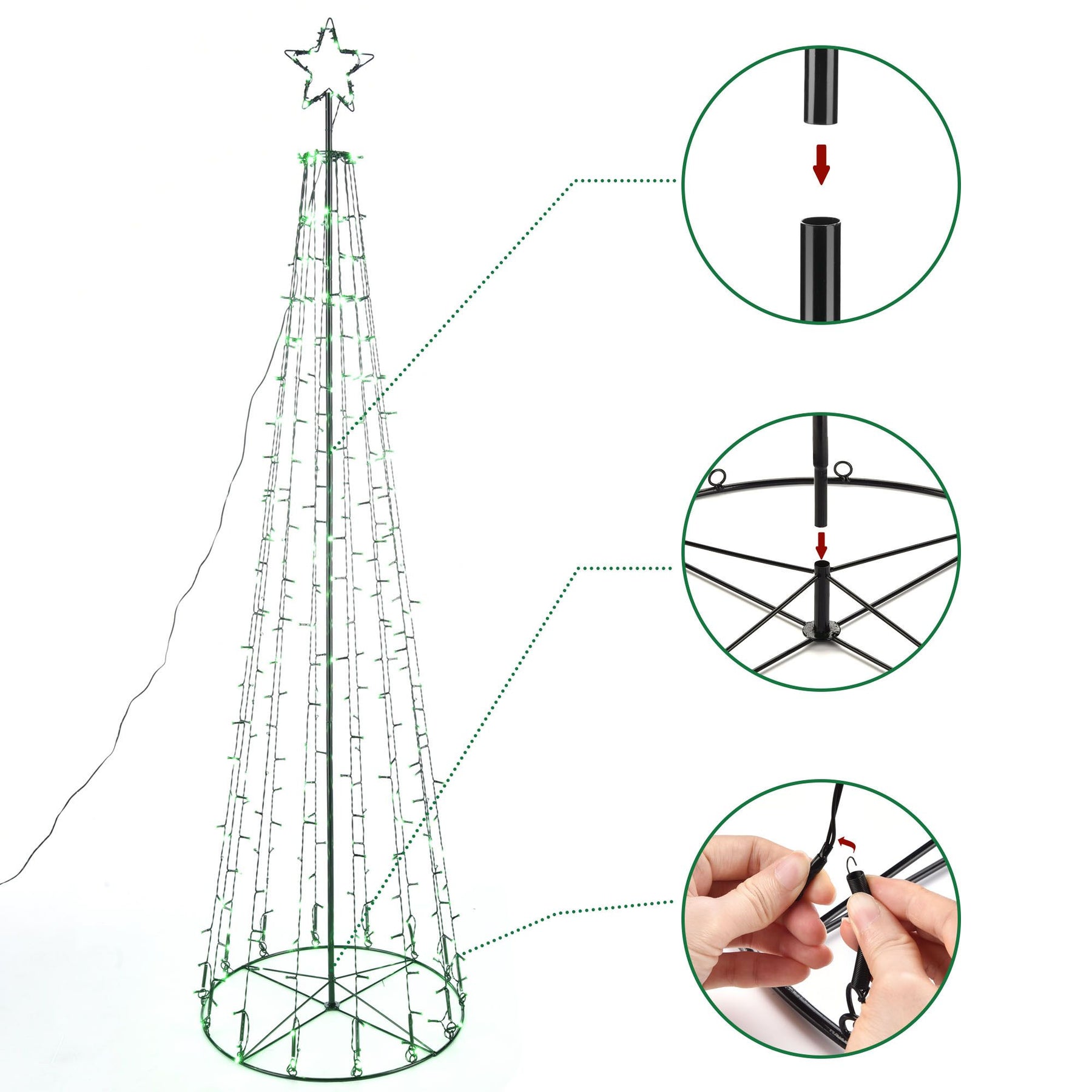 - Christmas Tree Decoration - 5 ft Cone Shaped Christmas Tree with lighted top star finial & 240 multi-color LED lights twinkling around the tree, adds dreamy atmosphere for indoor & outdoor space, great addition to Christmas winter wonderland style displays for living rooms, offices, bars, restaurants, parties