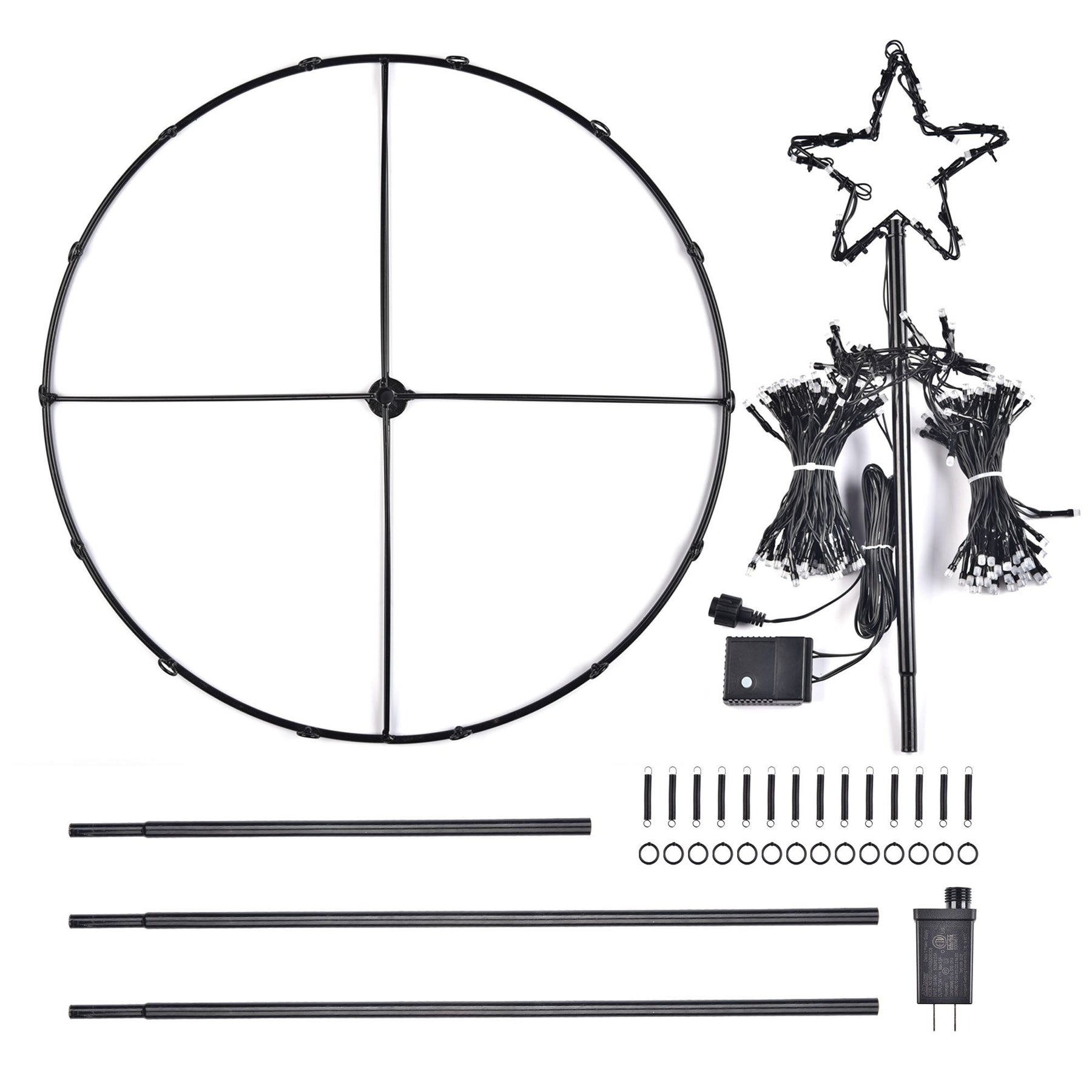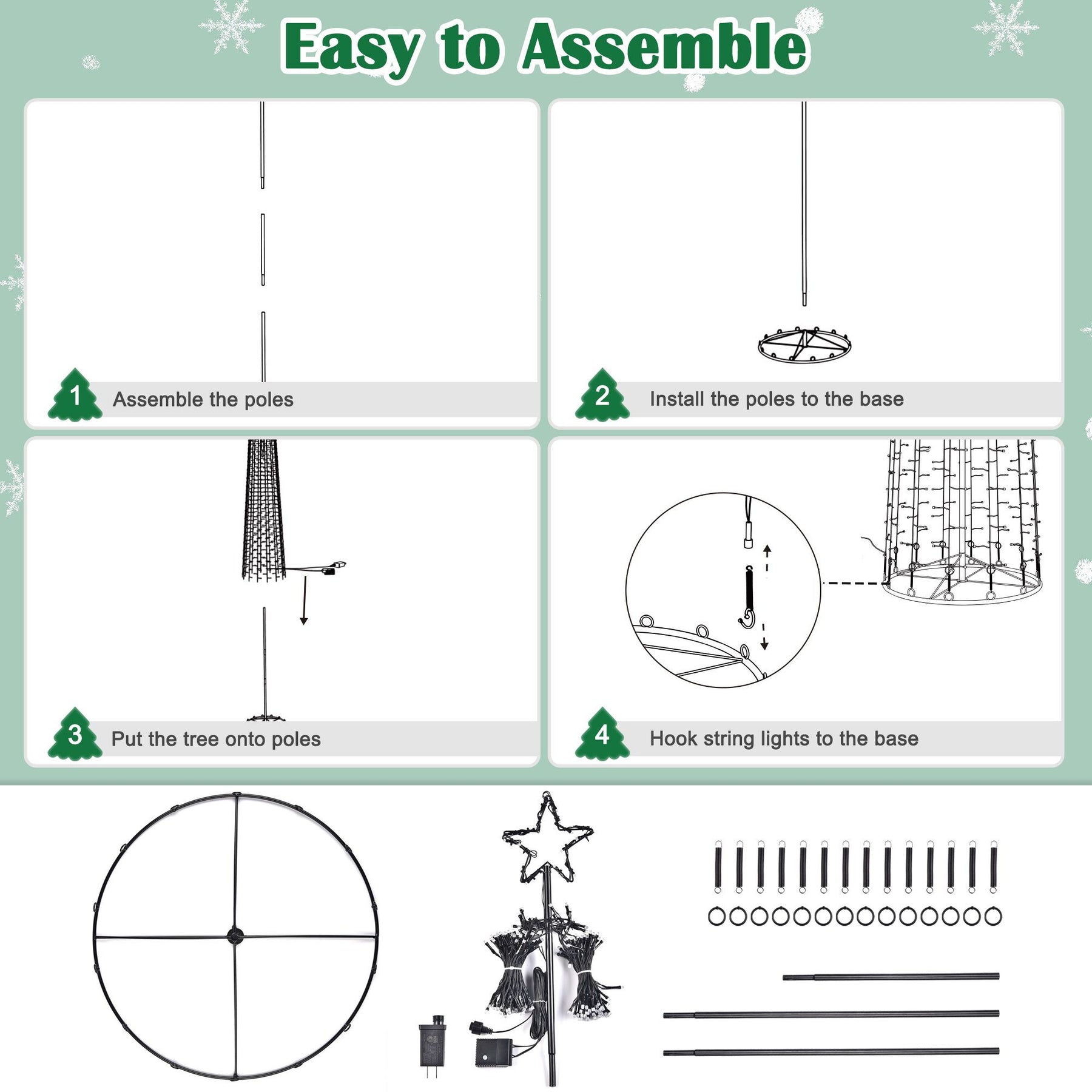 - Easy to Assemble & Disassemble - Easy setup in minutes without using tools, just install the poles to the base, put the Christmas tree lights onto poles and hook string lights to the base; Fully detachable poles for easy & space-saving storage, convenient to pack away for next year use
