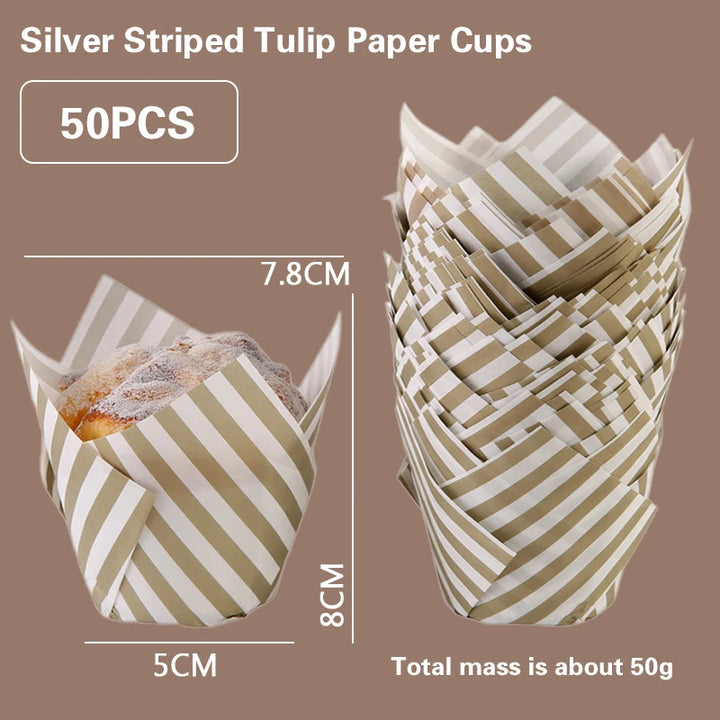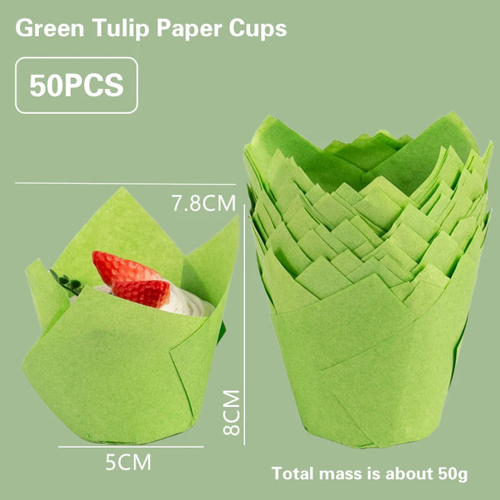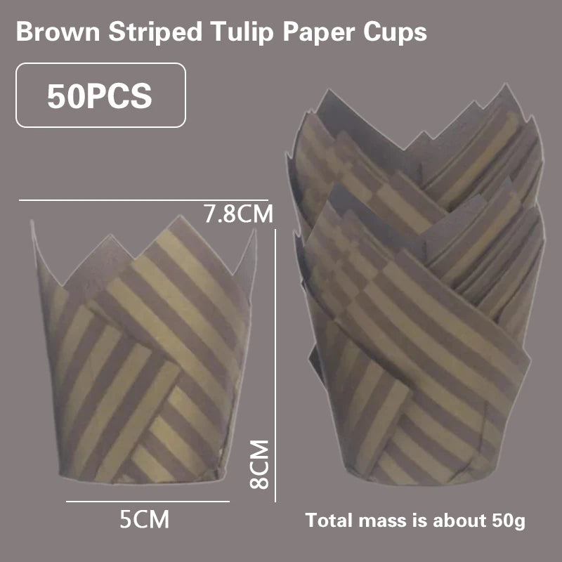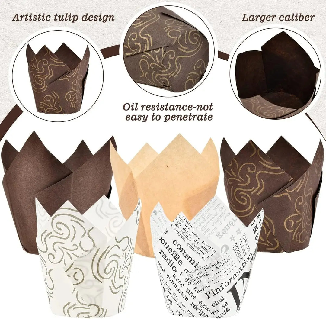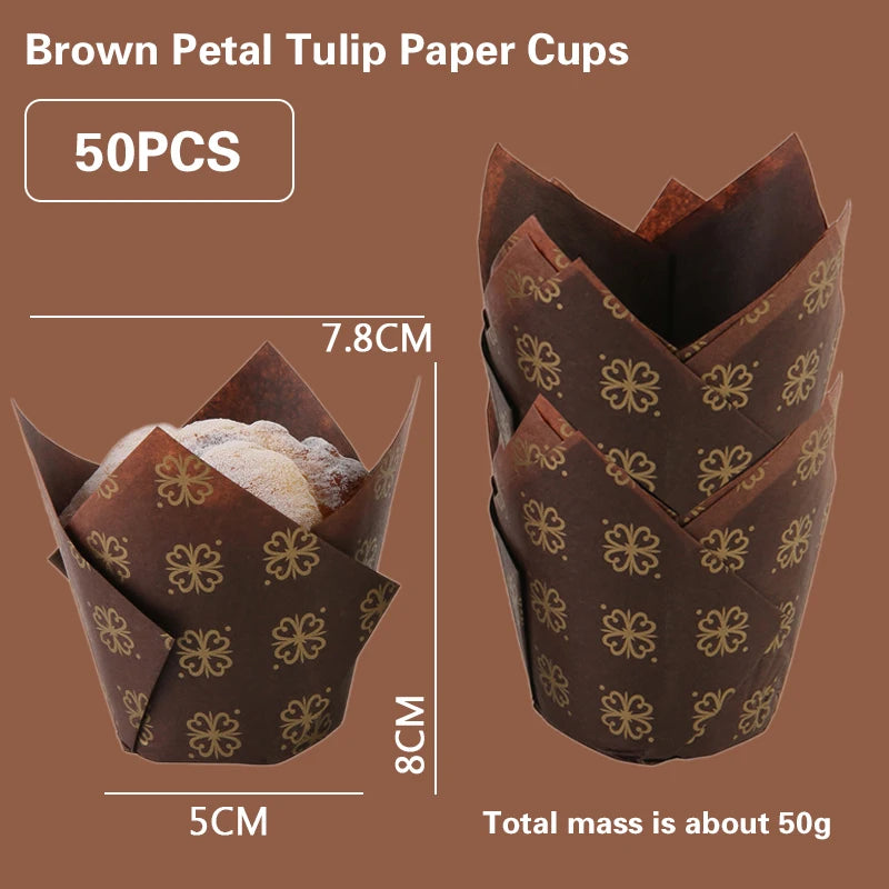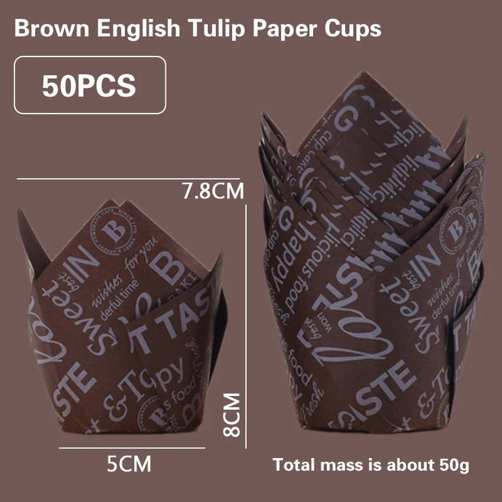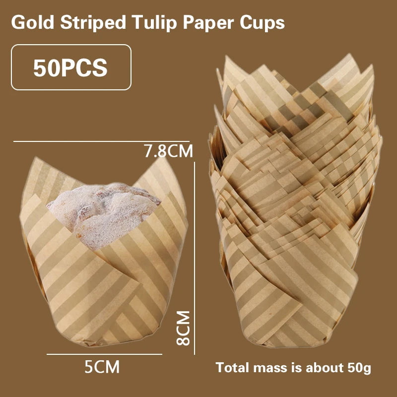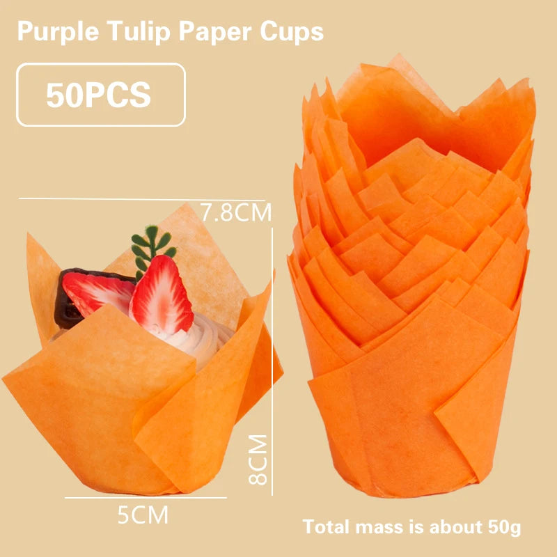 Elevate your baking game with our 50pcs Tulip Muffin Cupcake Paper Cups. Perfect for any occasion, these oilproof cupcake liners are designed to make your cupcakes not only look stunning but also ensure a hassle-free baking experience.