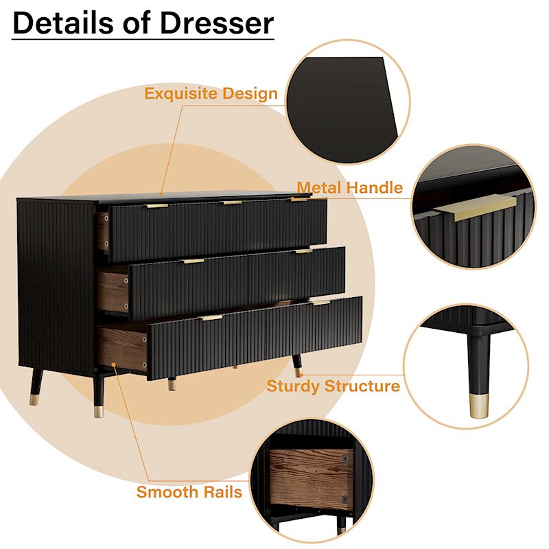 The back of the dresser is equipped with an anti-toppling device to ensure that it won't tip over and cause harm to your family or pets.