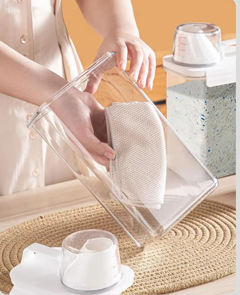 Transform your laundry routine with our Airtight Laundry Detergent Dispenser. This versatile container is designed to keep your washing powder and liquid detergent fresh, while adding a touch of convenience to your laundry space.
