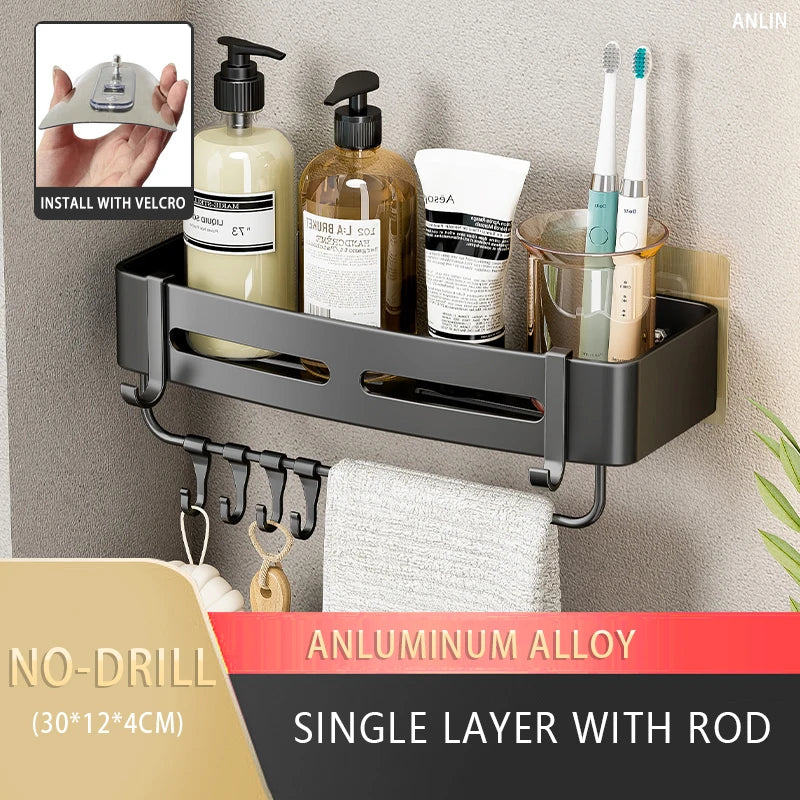 Upgrade your storage solutions and keep your space organized with our No Drill Bathroom Shelf. Functional, stylish, and easy to install, it's the perfect addition to any home!
