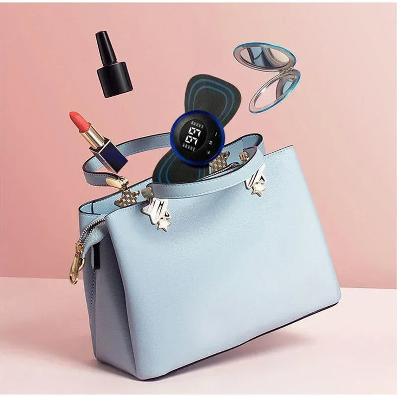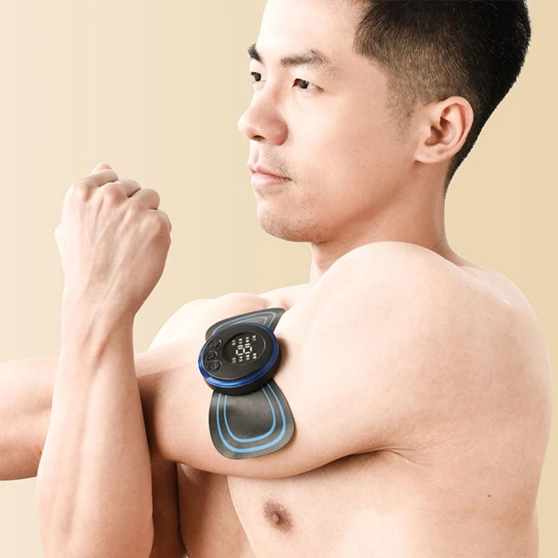 Attach the massager’s gel pad to the desired area, press "+" to start, and select the mode and intensity level that feels comfortable.