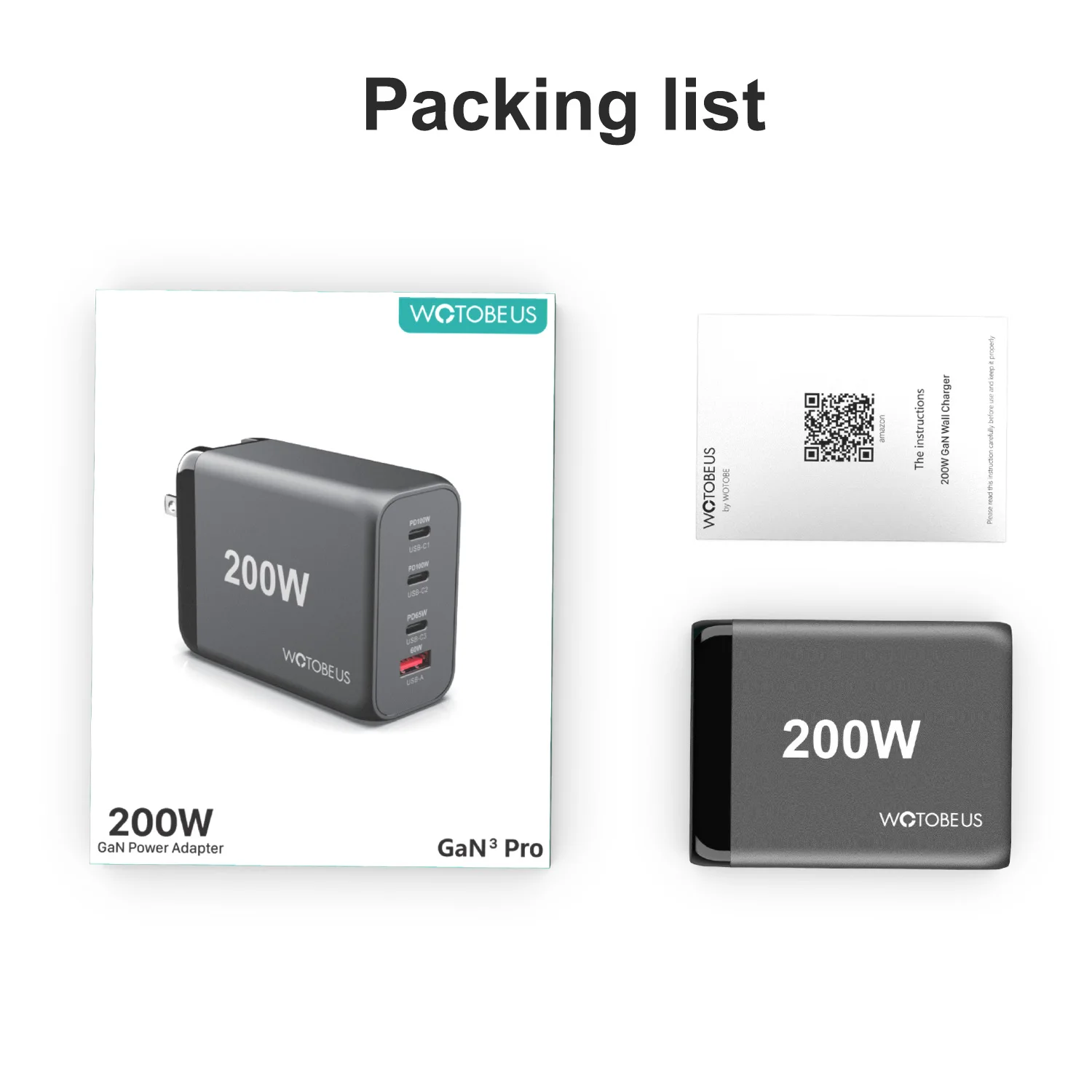 4-Port GaN 3 Pro 200W USB PD3.0/PPS/SCP Wall Charger