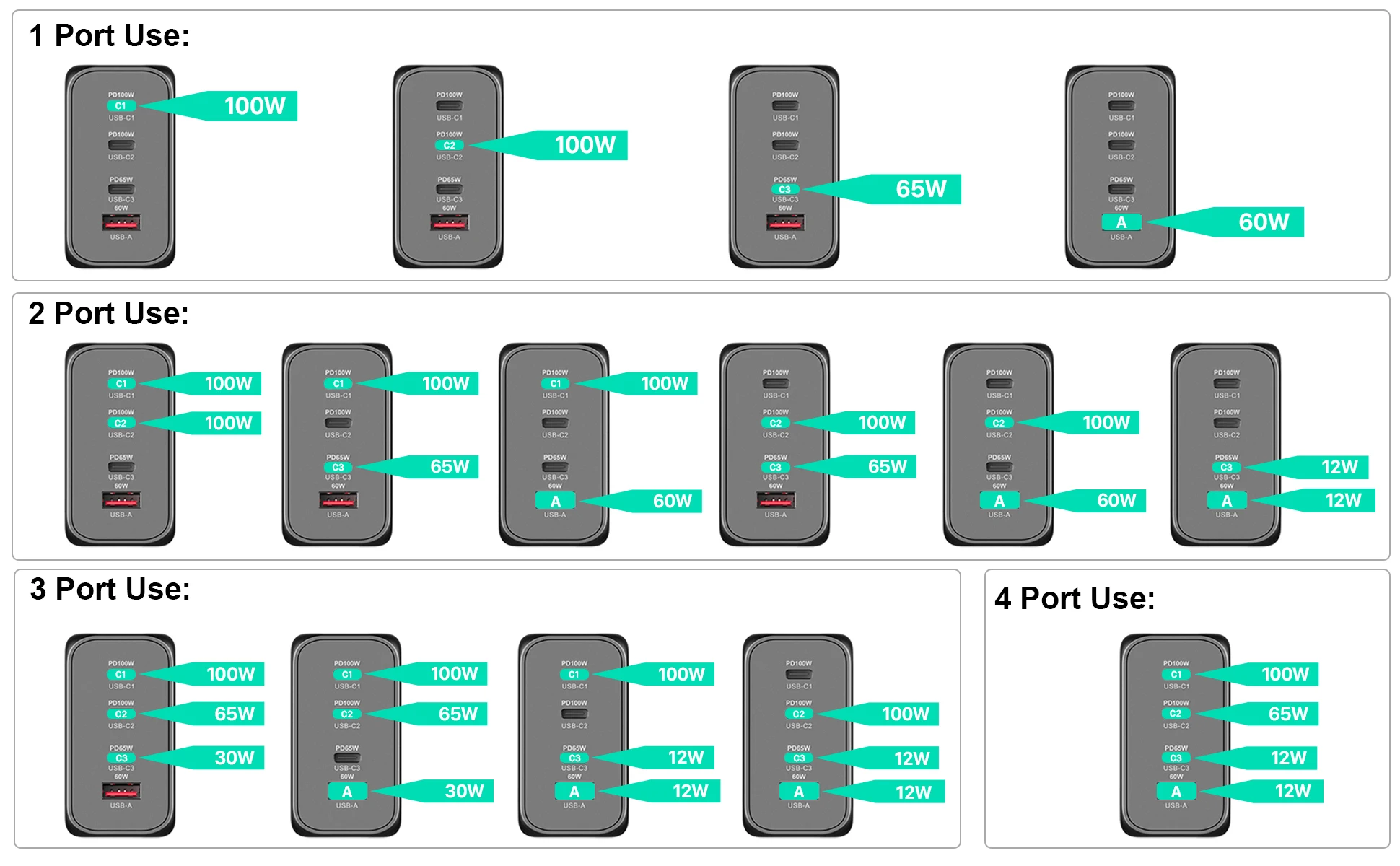 Ports: 3 x USB-C PD / 1 x USB-A QC