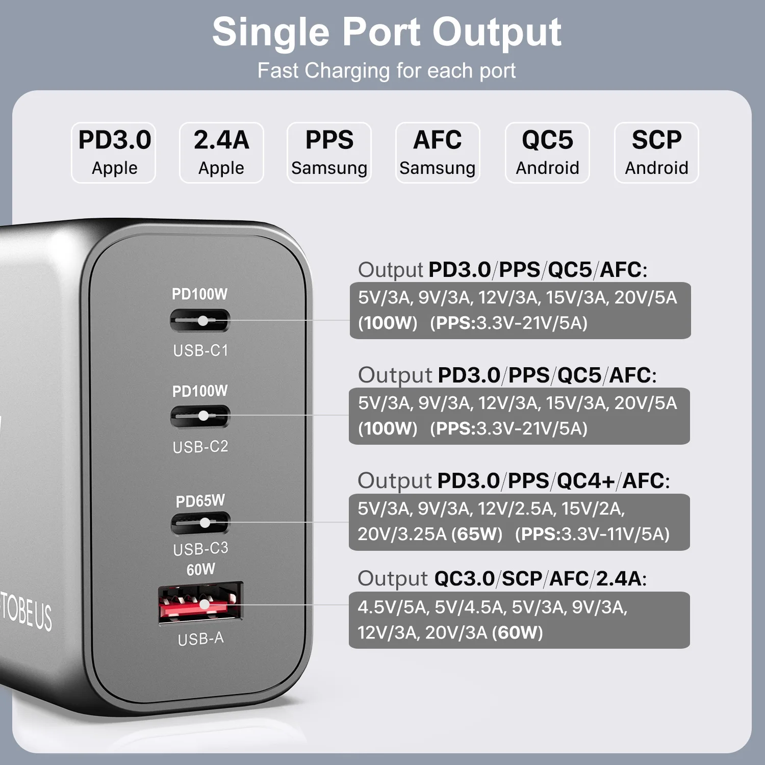 Ultra-Fast Charging: Delivers up to 200W total output with support for QC5, PD3.0, PPS, AFC, SCP, and more.