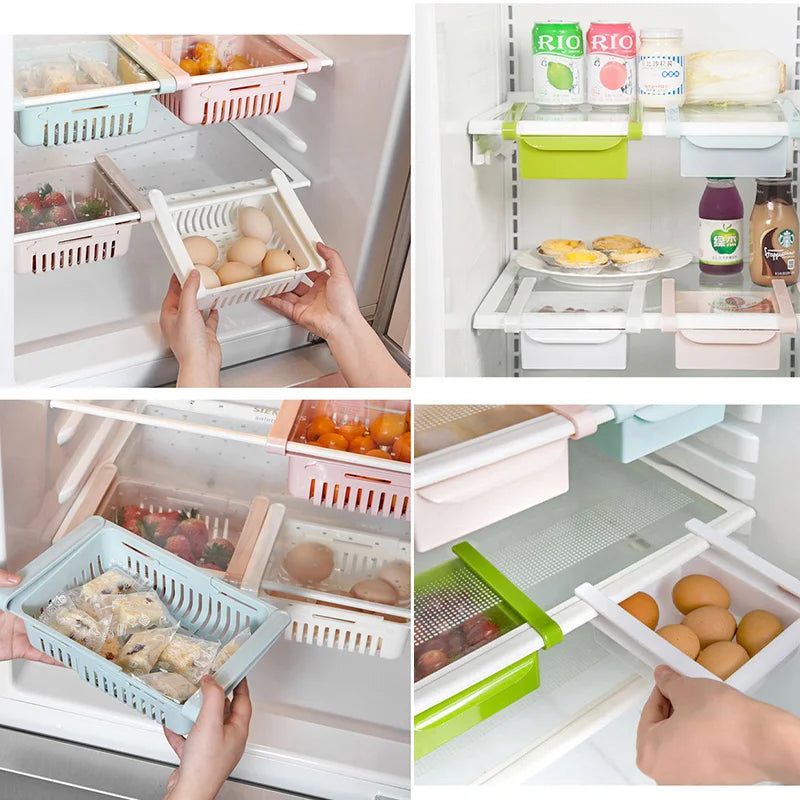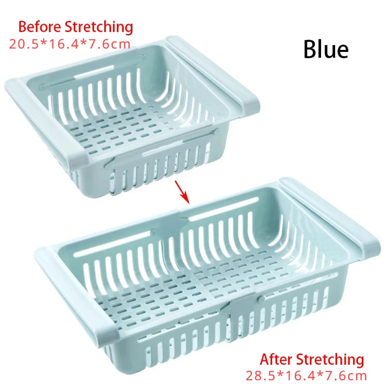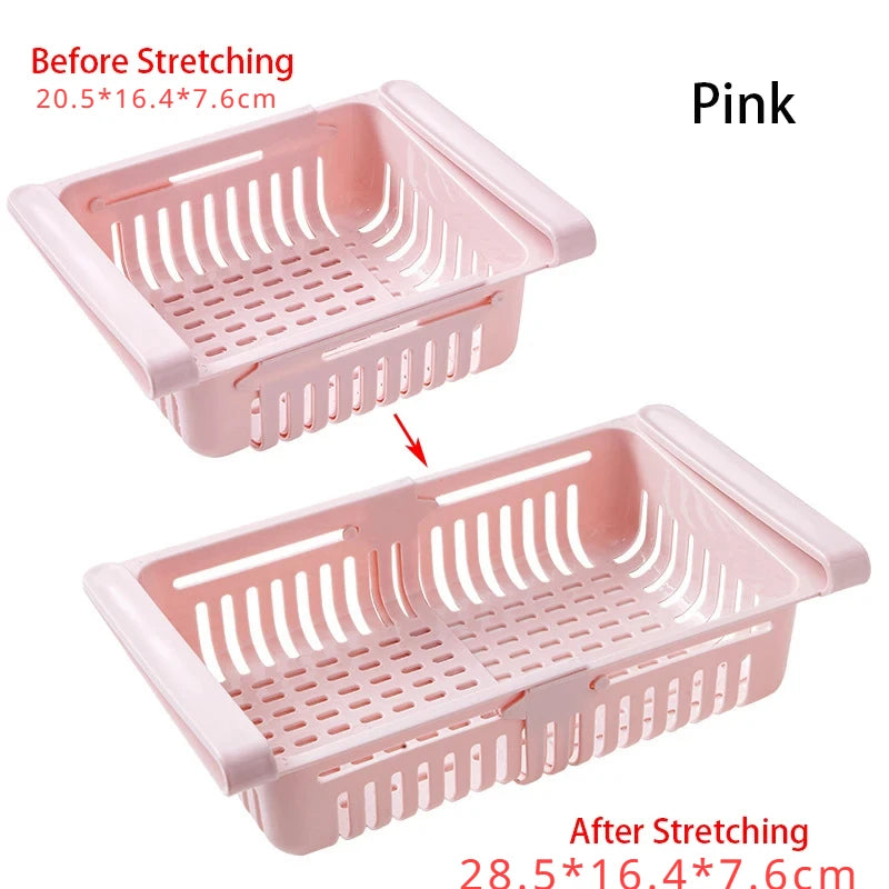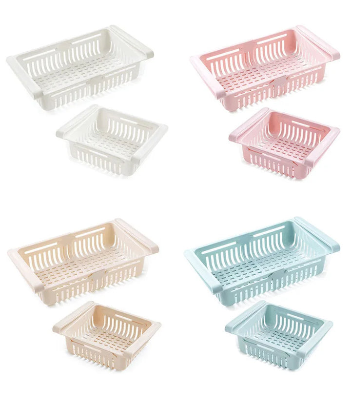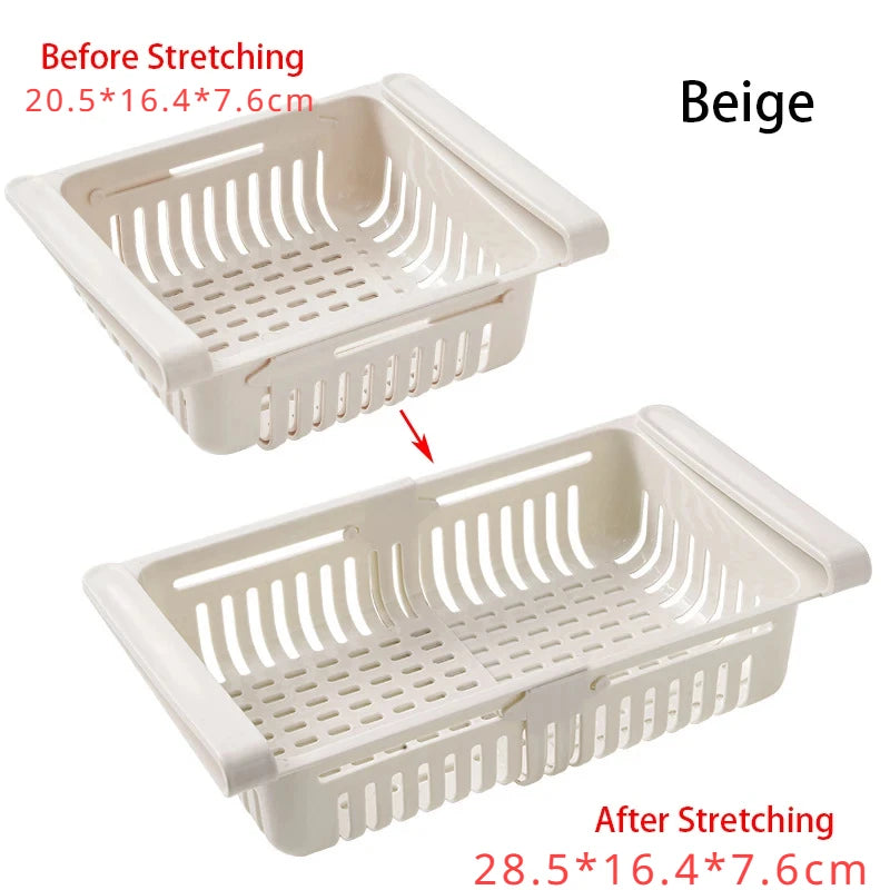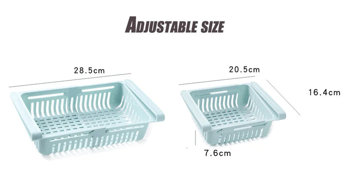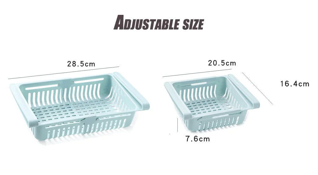 - Adjustable Size: Customize the dimensions of the adjustable basket from 20.5 to 28.5 cm in length, with a width of 16.4 cm and a height of 7.6 cm, to fit your refrigerator perfectly.