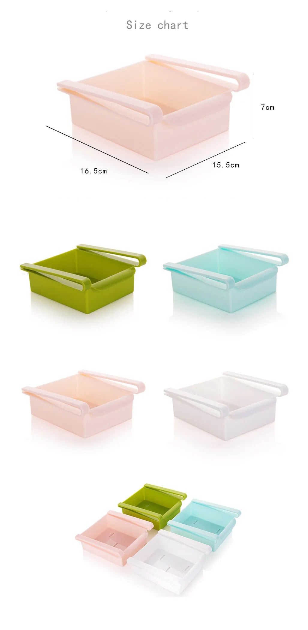 - Compact Design: The solid color basket offers a smaller size of 15.5 cm x 16.5 cm x 7 cm, ideal for maximizing space in any refrigerator setup.