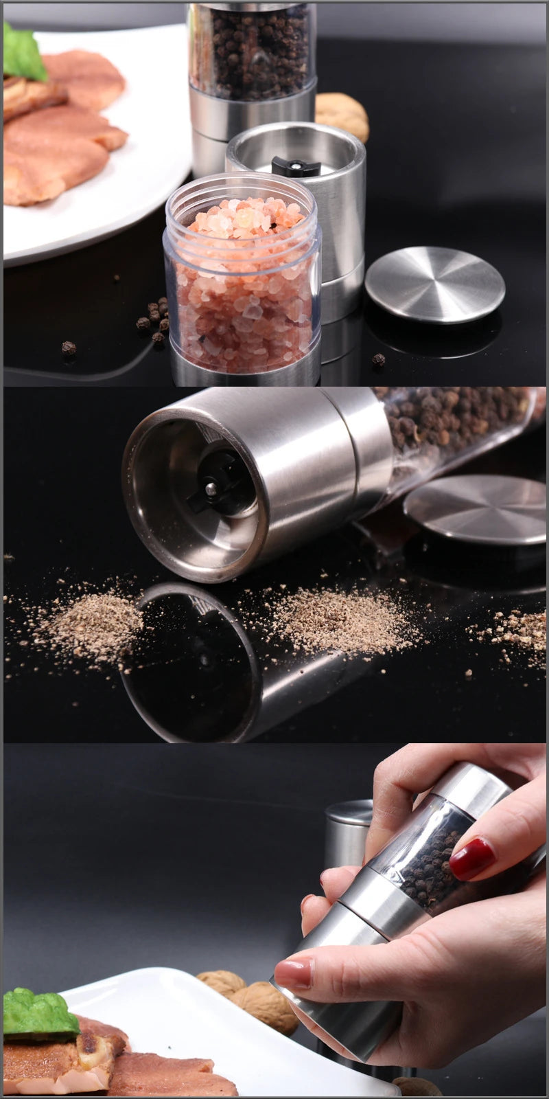 Upgrade your kitchen tools with our Stainless Steel Manual Salt and Pepper Mill Grinder and enjoy the benefits of freshly ground spices in your cooking. Whether you're seasoning a simple salad or preparing a gourmet meal, this grinder is the perfect companion!