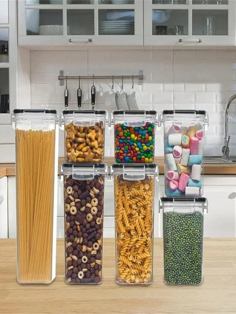 Transform your kitchen with our Kitchen Food Storage 7pcs-set Container. Made from BPA-free plastic, these versatile storage boxes are perfect for keeping your cereals, candies, and more fresh and neatly organized.