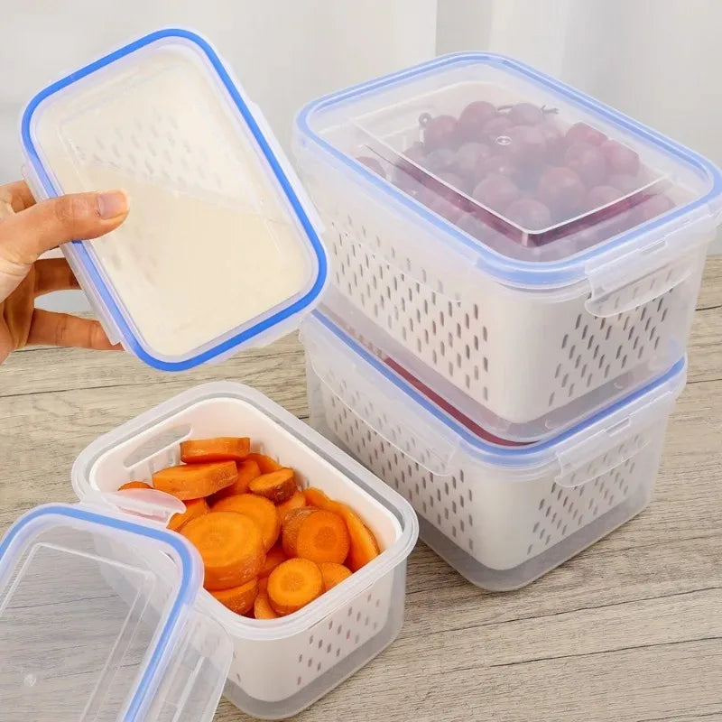 Transform your kitchen organization with our Kitchen Storage Boxes. Designed for optimal food preservation, these large-capacity clear food sealed jars are perfect for keeping your fruits, vegetables, and other perishables fresh and safe.