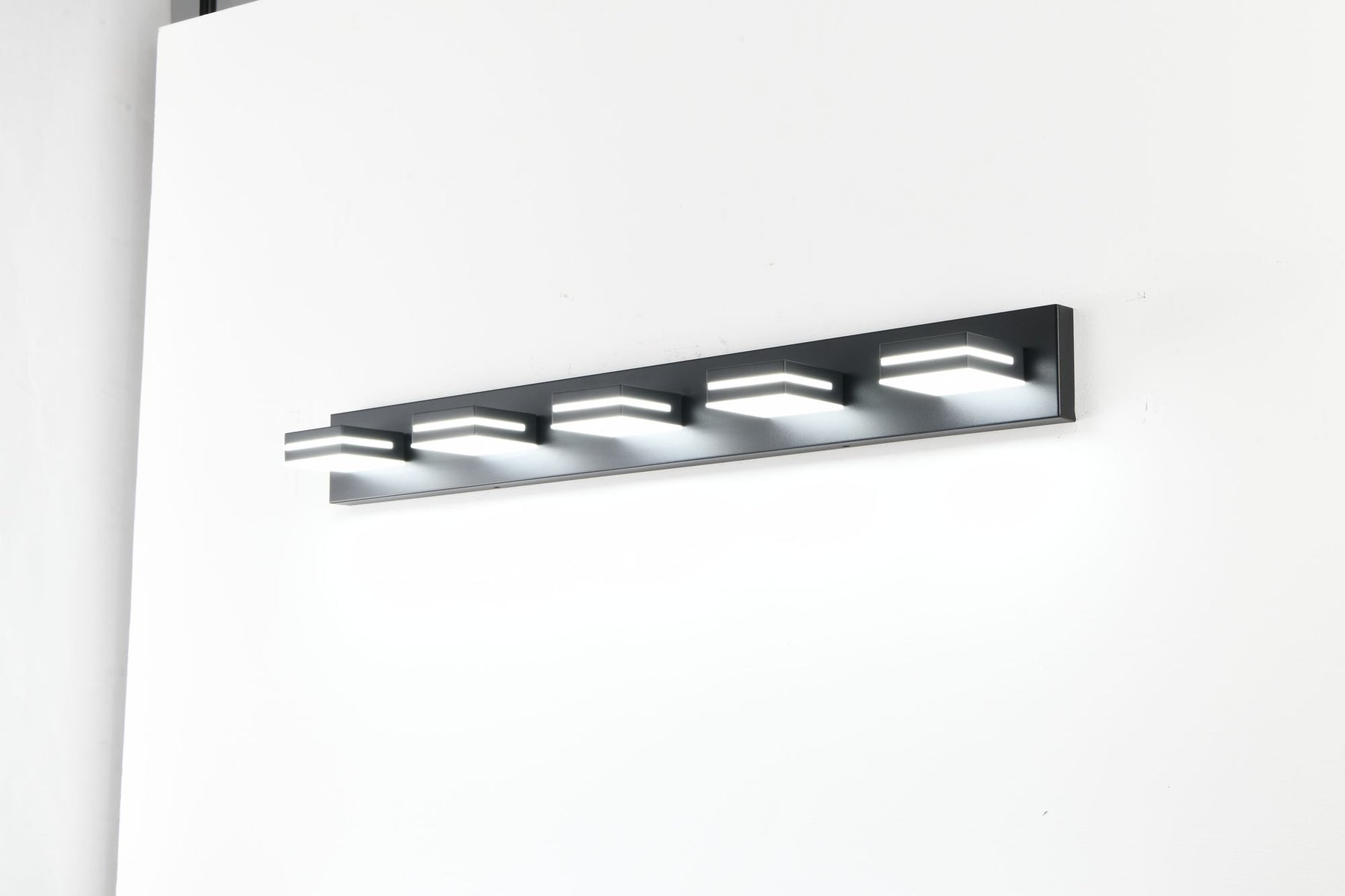 Modern Black LED Vanity Light is a five-head wall sconce designed for bathrooms, powder rooms, and makeup areas. Its sleek black finish and minimalist design deliver contemporary style while providing bright, soft illumination to elevate daily routines.