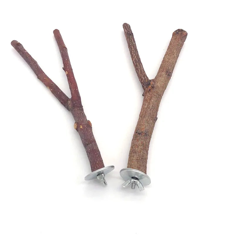 Enhance your pet's environment with the Natural Wood Pet Parrot Raw Wood Fork Tree Branch Stand Rack Squirrel Bird Hamster Branch Perches Chew Bite Toys Stick today! Your furry and feathered friends will love their new playtime accessory.