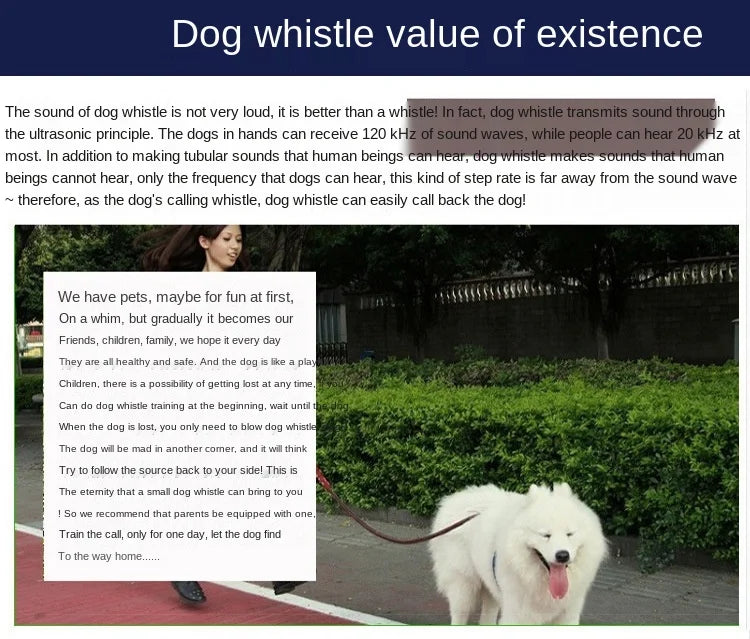 Dog whistle with the dog (can also be used for other pet birds such as pigeons)to establish a good tool for communication and discipline.