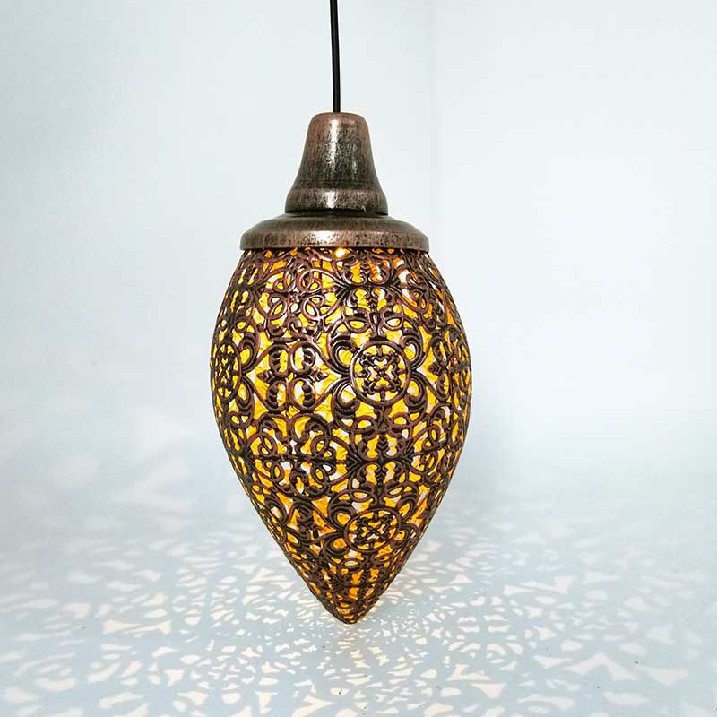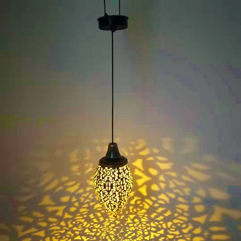 Outdoor Garden Wrought Iron LED Solar Water Drop Rugby Pendant Hollow Waterproof Hanging Lamp Landscape Light Villa Chandelier