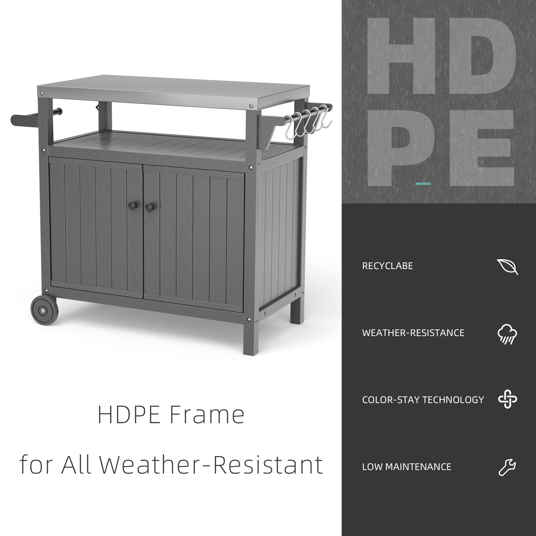 [STURDY CONSTRUCTION]HDPE(High Density Polyethylene) material which is Weather Resistant and stainless steel countertops, it provides an efficient preparation and service spacewhich is Weather Resistant ,Water-Resistant and UV-resistance .Compared with other wood ones, it is less prone to broken, deformation and discoloration