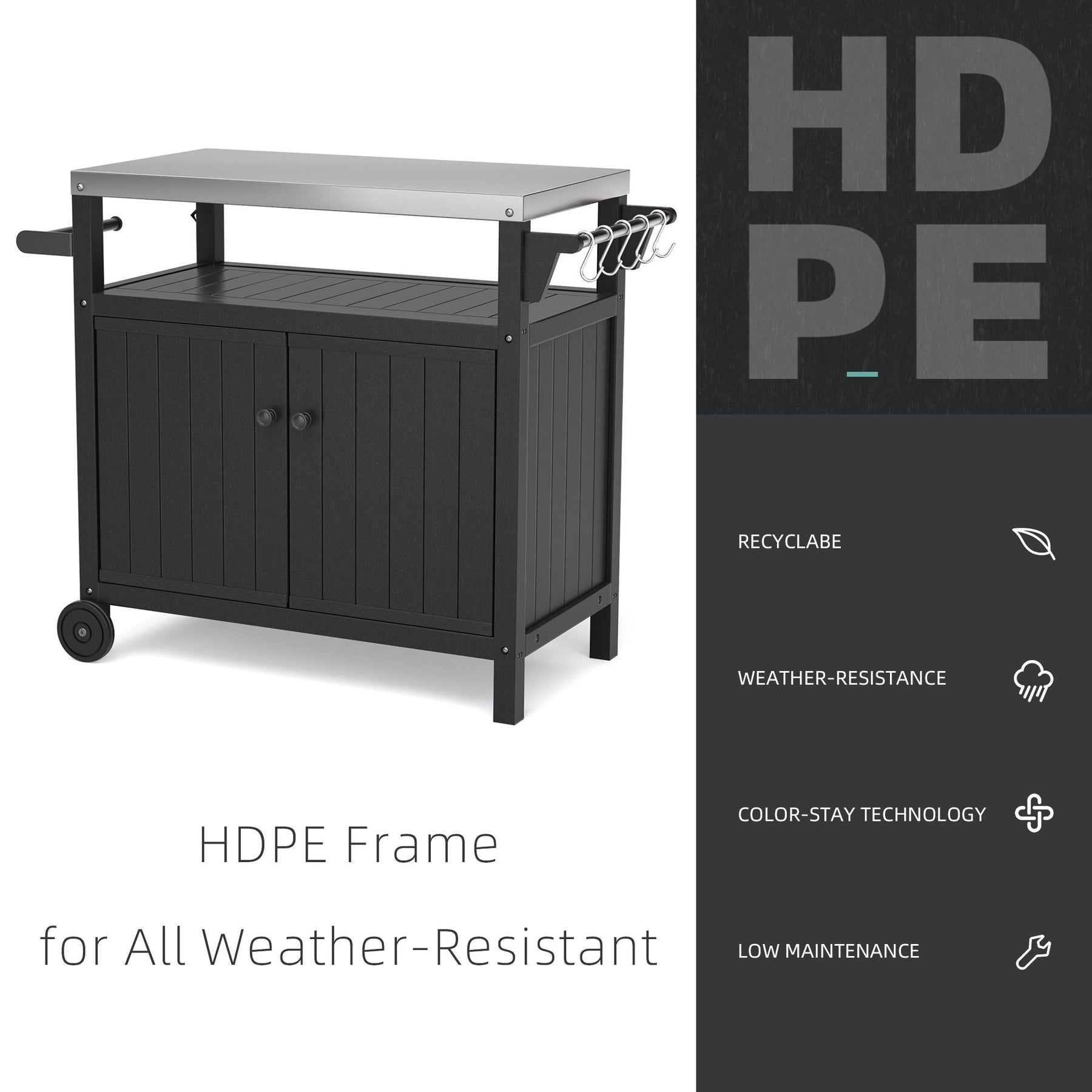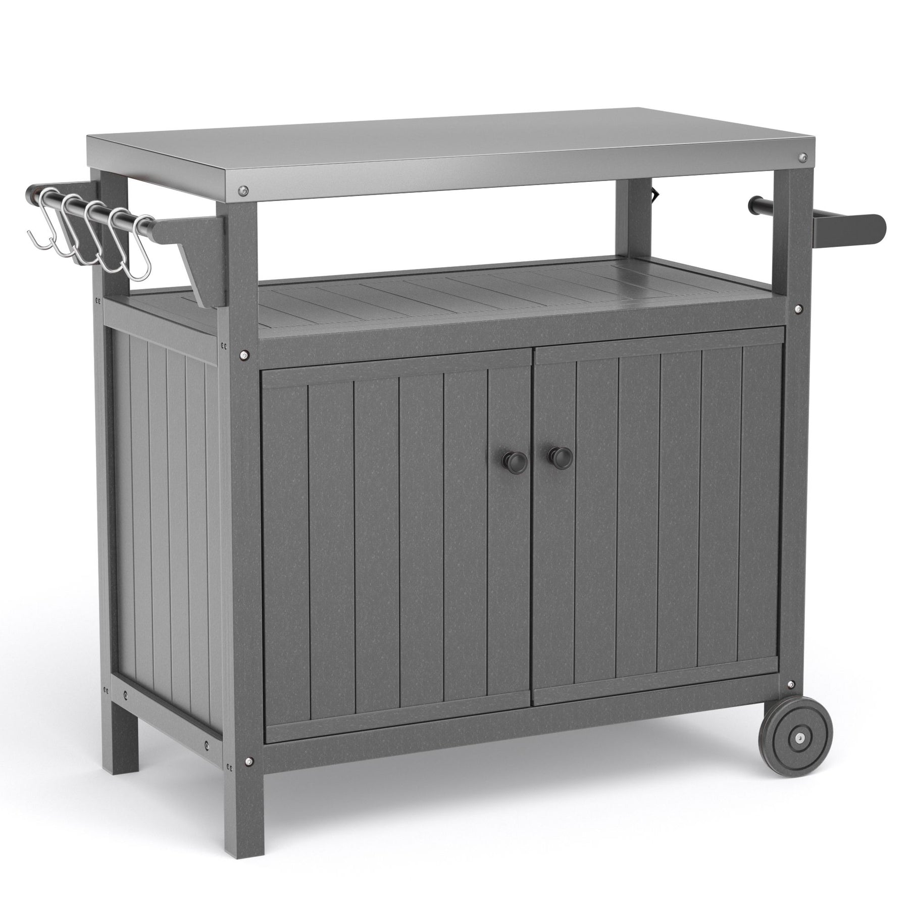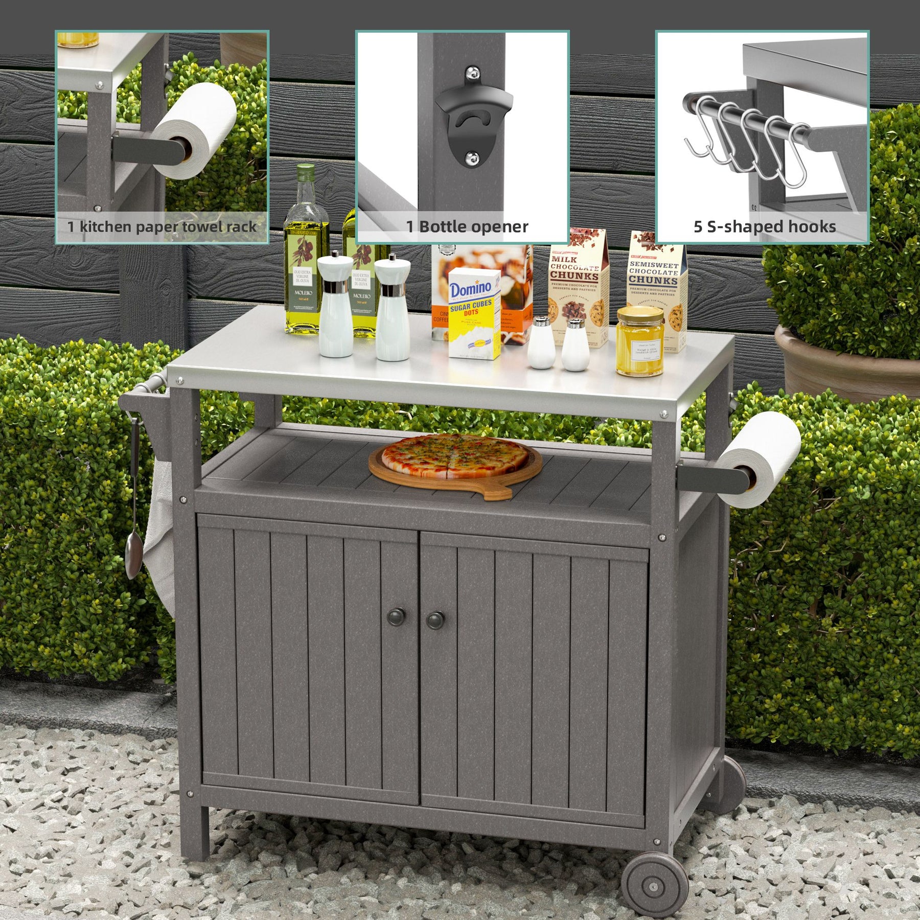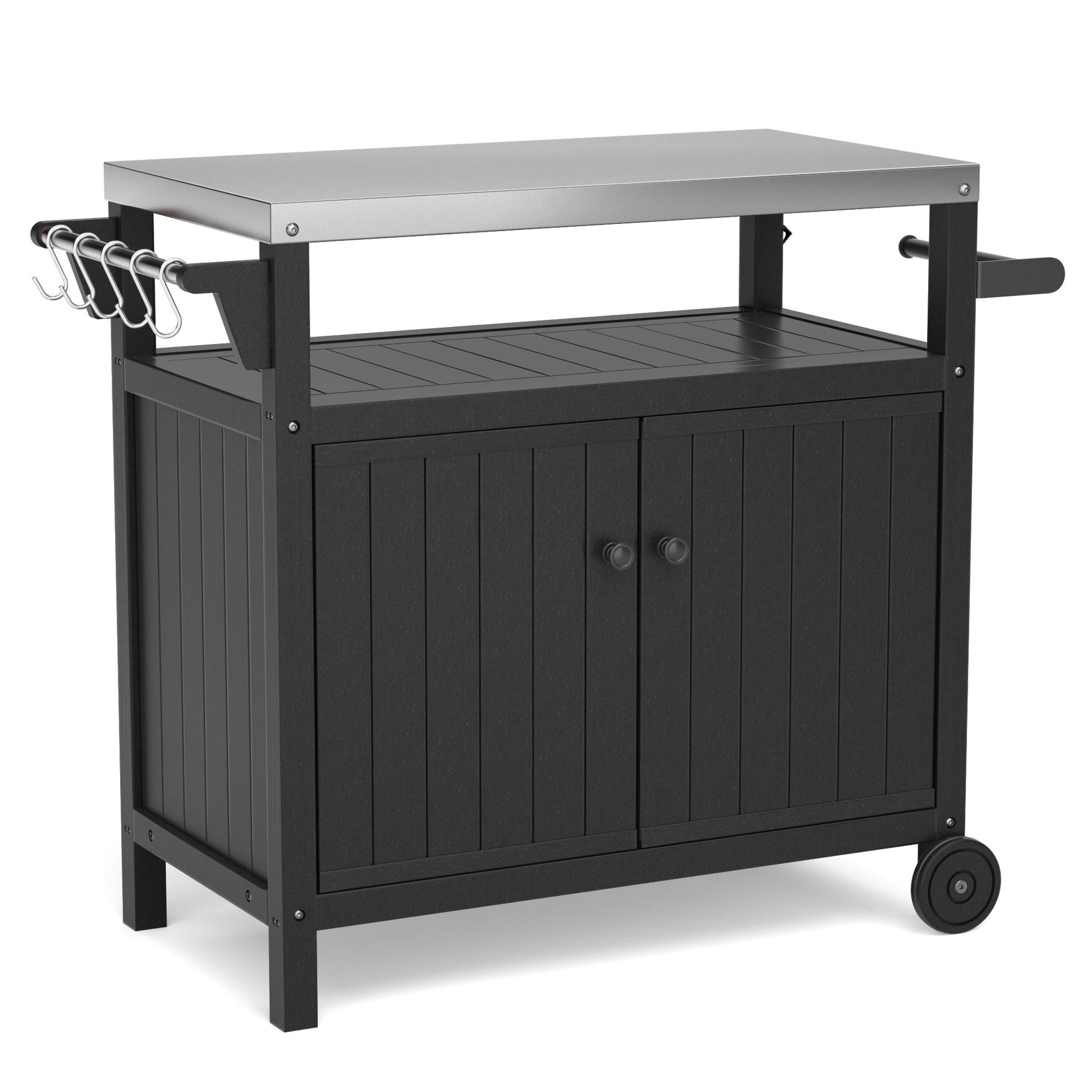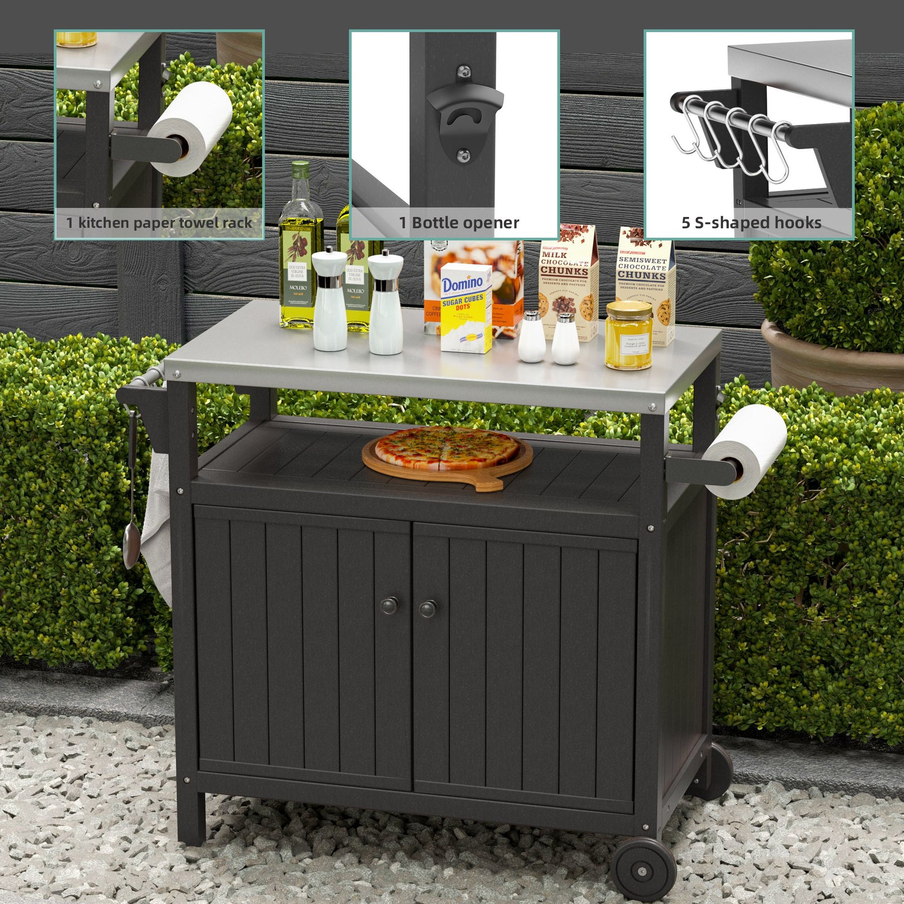 [Easy to Move]quipped with 2 wheels for easy maneuvering to ensure stability on uneven surfaces; design makes the outdoor prep table for grill easier to move. Perfect for outdoor activities, use as a outdoor BBQ bar cart,outdoor grill prep table and outdoor kitchen island.