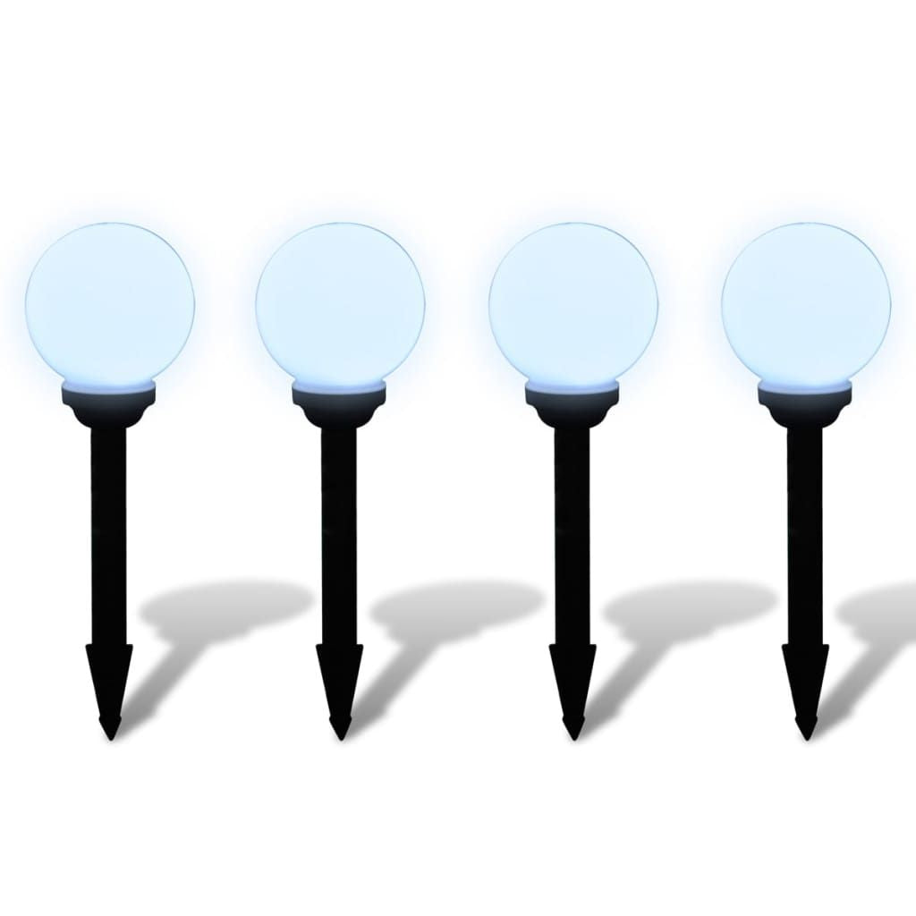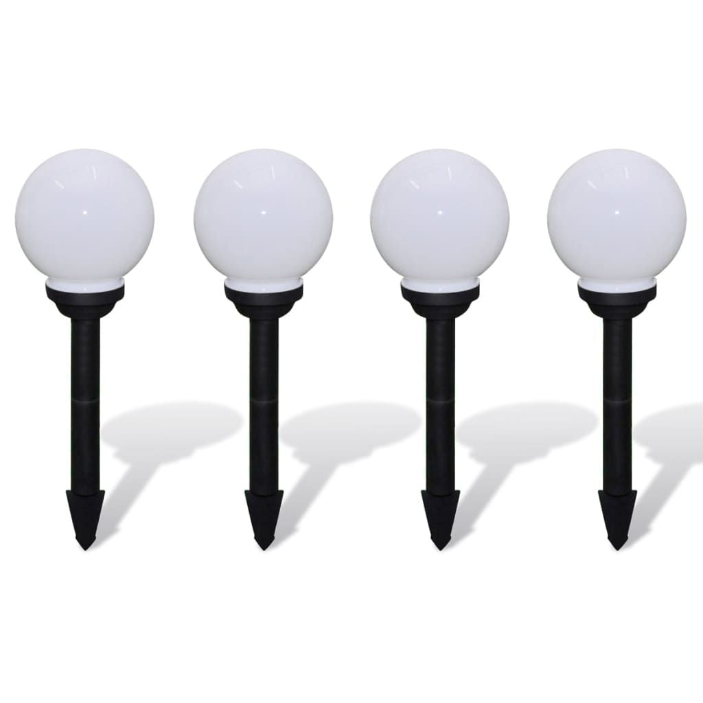 This 4-piece LED solar light set comes complete with tubes, ground spikes and rechargeable batteries. It is a perfect decorative lighting for gardens, patios, paths, yards and balcony. Each solar ball light is made of durable plastic for years of use. With two 0.1 W LED lights inside, each piece of solar ball lamp is able to provide 0.2 W lighting. So 0.8 W for the whole set.