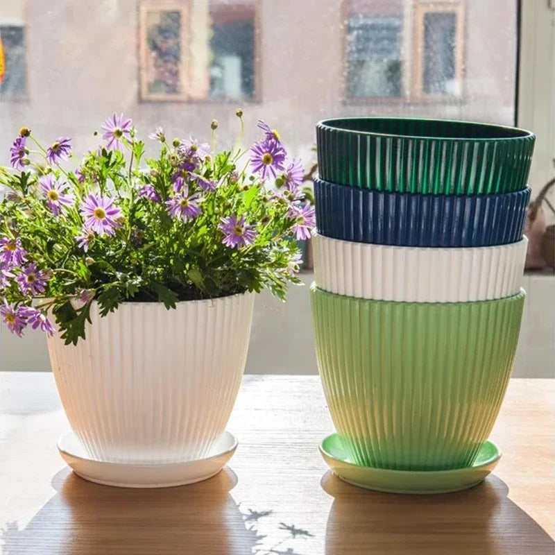 Elevate your home and office decor with our Plastic Succulent Flower Pot, featuring a stunning vertical striped design reminiscent of ancient Roman columns. This modern planter combines style and functionality, making it an essential addition to any indoor or outdoor setting.