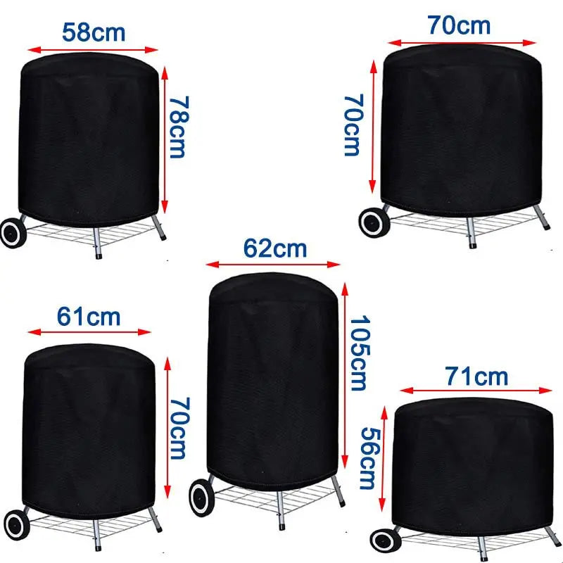 Protect your outdoor grill or fire pit with our premium Round Black Outdoor Grill Cover, designed to withstand the elements and keep your BBQ equipment in pristine condition. Crafted from heavy-duty 210D Oxford cloth, this cover is not only durable but also waterproof, ensuring your grill remains dry and ready for your next cookout.