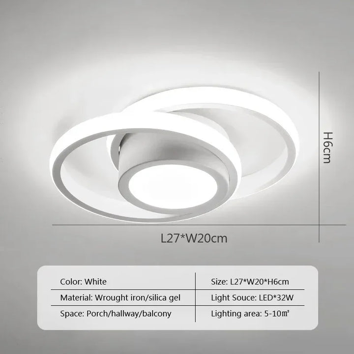 Transform any room into a modern masterpiece with our Small Modern LED Ceiling Light. Featuring a unique 2 Rings Creative Design, this ceiling lamp effortlessly combines functionality with contemporary aesthetics, making it a perfect addition to your hallway, balcony, aisle, or office.