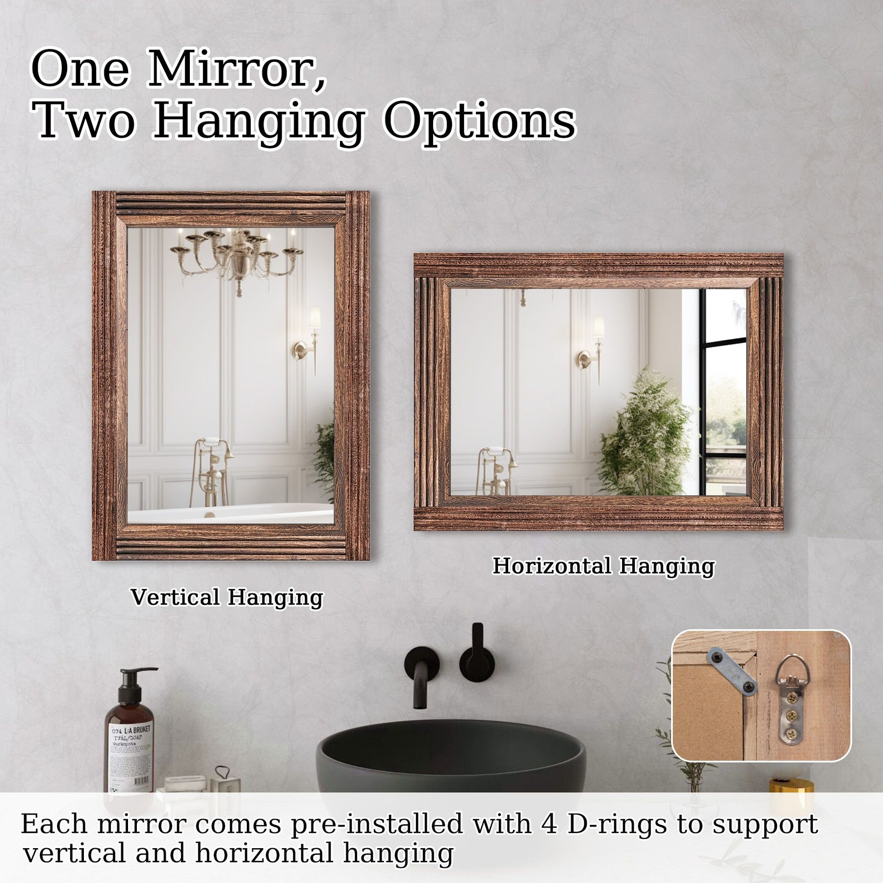 Rustic wooden vanity mirror: The wooden frame mirror gives a unique sense of sophistication, while the classic natural wood grain and pine wood frame add character and charm to the product. You can mount it on a dressing table, in the bathroom, or on the wall of the bedroom, and this mirror is available in a variety of sizes. It can be mounted horizontally or vertically, and we provide two drywall anchors and screws.