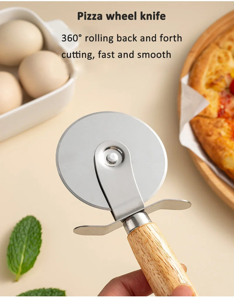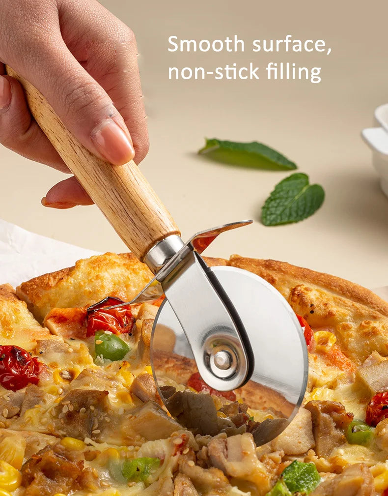 Elevate your culinary experience with our Stainless Steel Pizza Cutter featuring a stylish wooden handle. This essential kitchen tool is designed for both amateur chefs and seasoned bakers, making it a must-have accessory for any kitchen, restaurant, or party setting.
