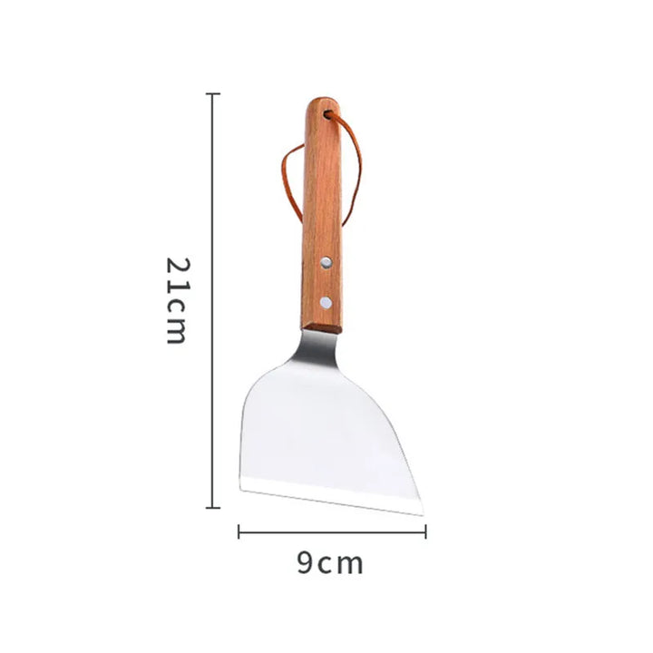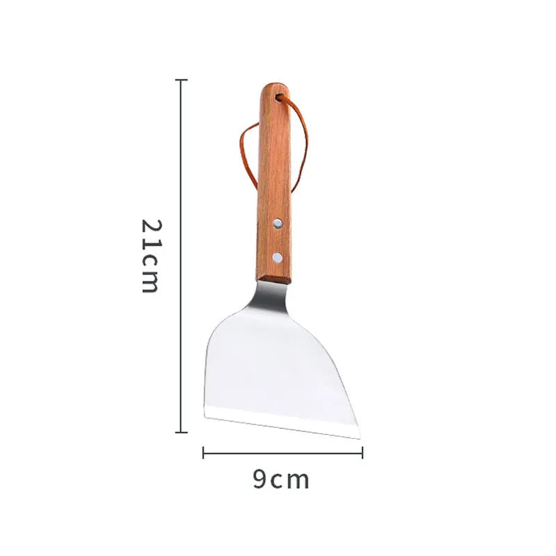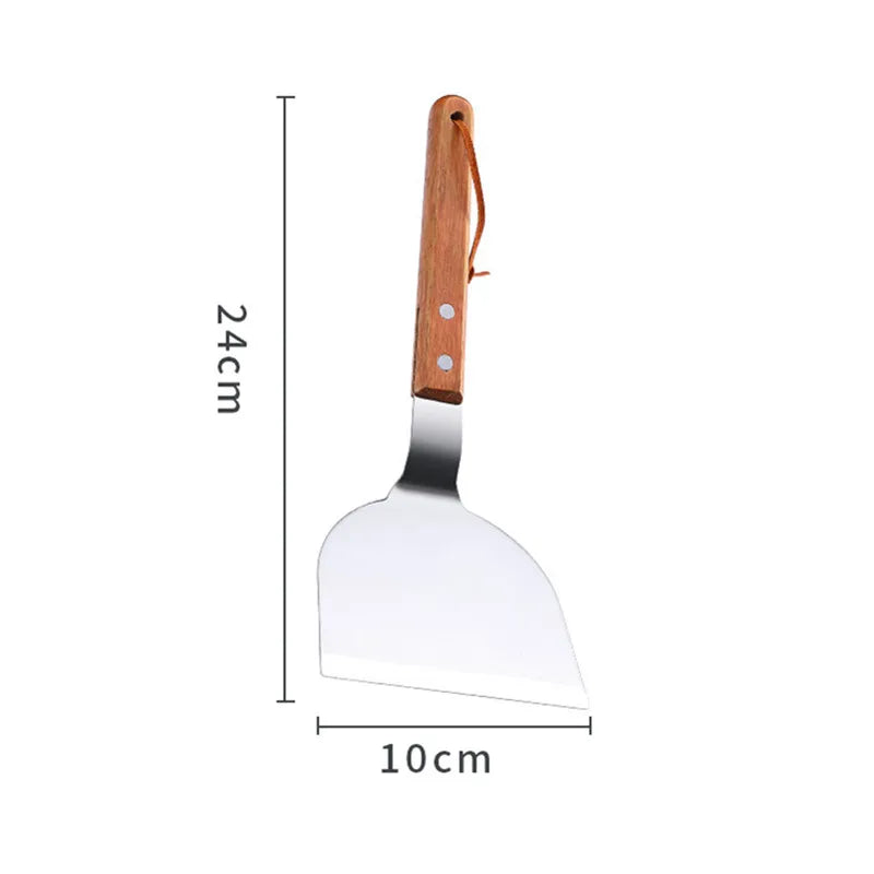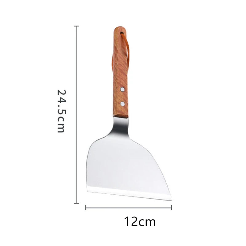 Upgrade your cooking tools with our Stainless Steel Wooden Handle Teppanyaki Shovel and enjoy a seamless cooking experience. Perfect for any kitchen or grill, this spatula is your go-to utensil for delicious meals!