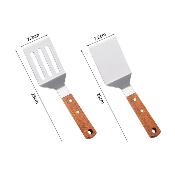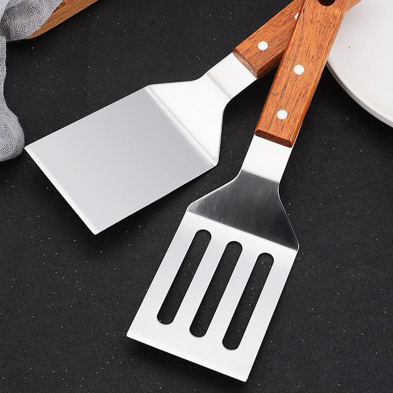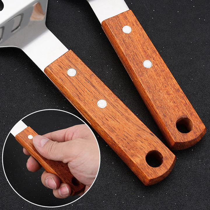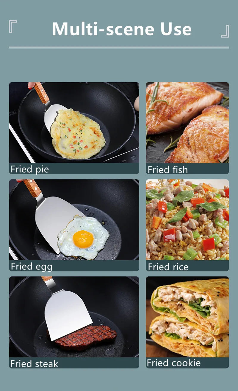 - Premium Materials: Crafted from high-quality stainless steel, this spatula ensures durability and longevity, while the wooden handle provides a comfortable and secure grip for effortless flipping and turning.