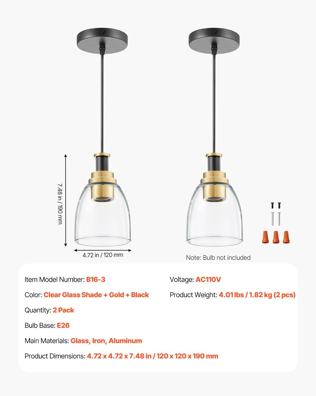 High Bulb Compatibility: The kitchen pendant light is equipped with an E26 socket, works with incandescent, LED, CFL, and halogen bulbs (bulbs not included). Fully dimmable with compatible dimmable bulbs and switches. Each bulb ≤ 60W.