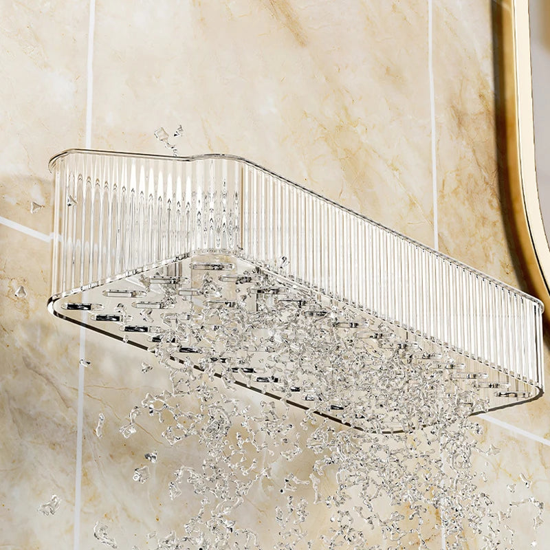 Revolutionize your bathroom organization with our innovative Wall Mounted Cosmetics Storage Rack. Designed to fit seamlessly in any corner, this no-hole required shelf offers a convenient solution to keep your cosmetics and accessories tidy and easily accessible.
