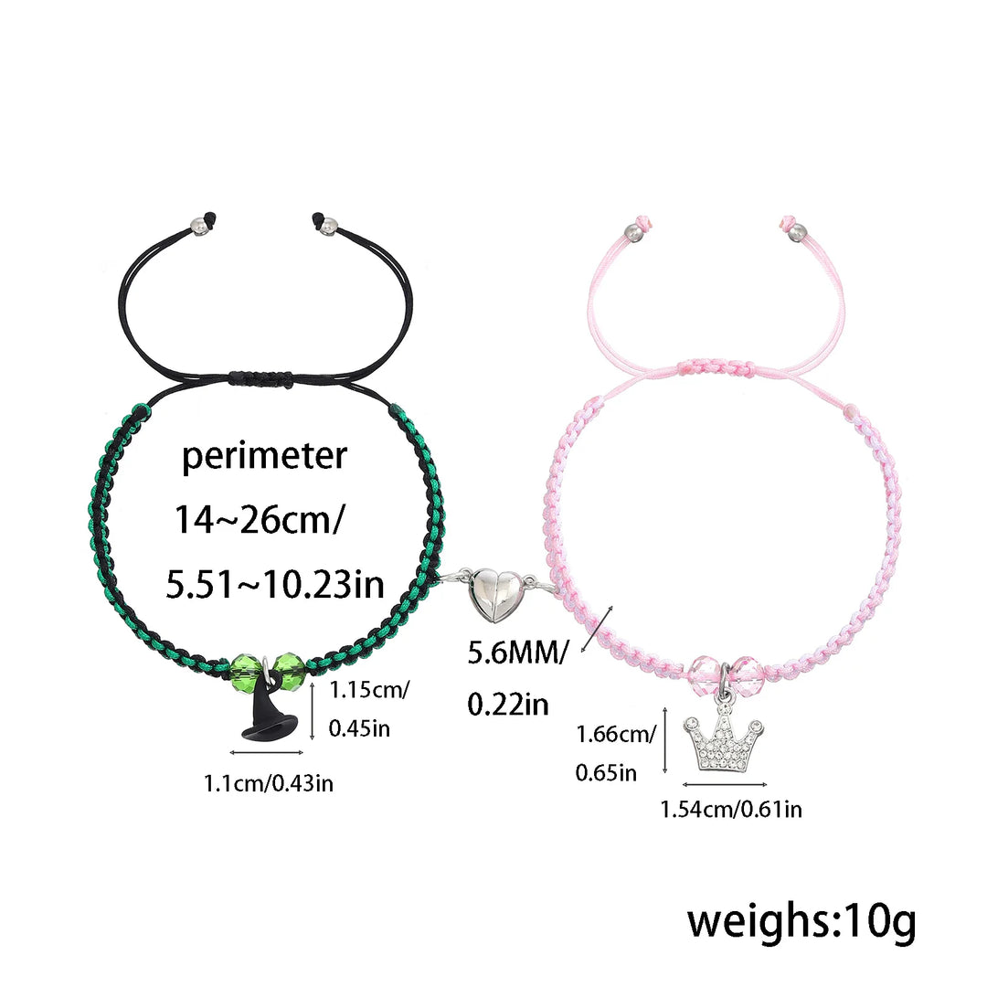 Celebrate your unbreakable bond with the Wicked Friendship Matching Bracelets - Rhinestone Crown Witch Hat - BFF Couples Christmas Valentine's Day Gifts for Fans Party. These exquisite bracelets are designed to symbolize the magical connection between friends, making them the perfect gift for any occasion. Crafted with high-quality zinc alloy and adorned with stunning rhinestones, each piece features a delightful crown and witch hat charm that radiates charm and whimsy.