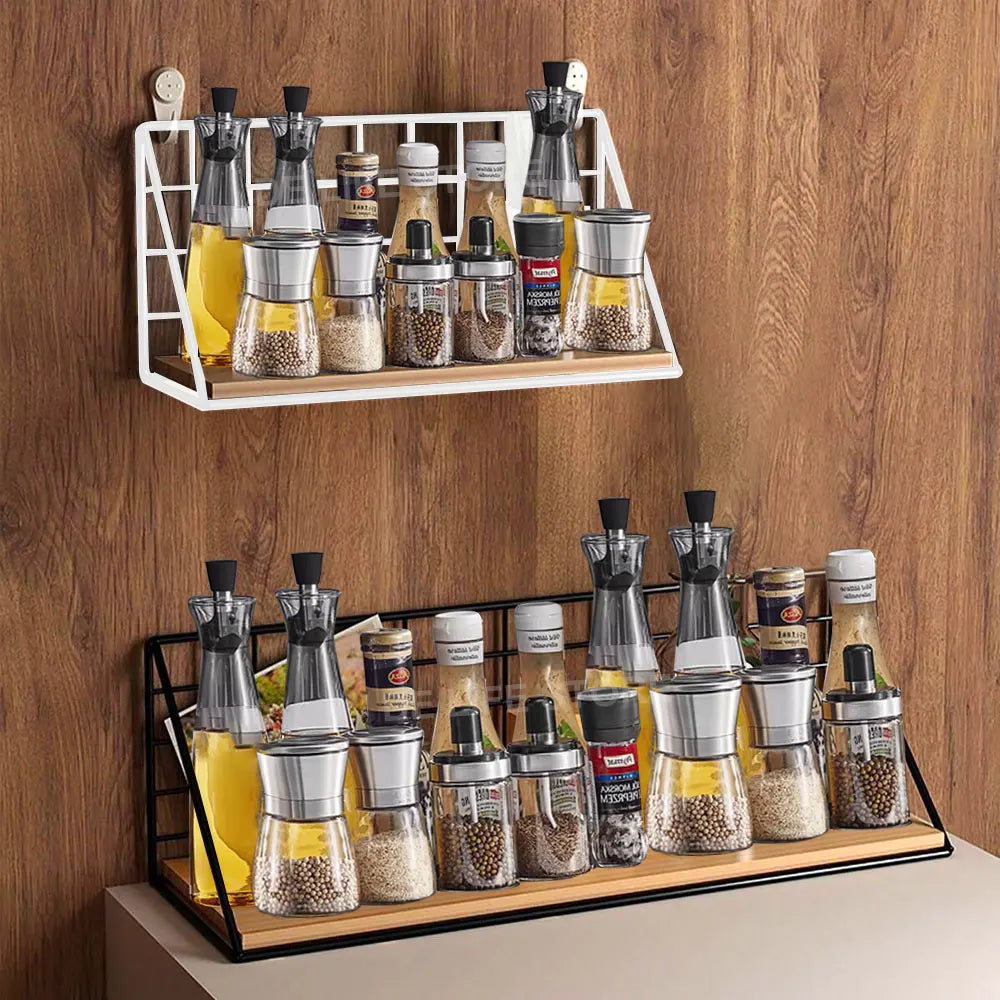 - Sturdy Metal and Wood Design: Crafted from a combination of robust metal and elegant wood, this spice shelf is built to last. The metal frame provides exceptional stability while the wood laminate adds a warm, inviting touch to your kitchen.