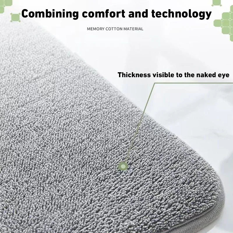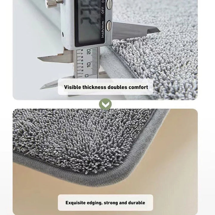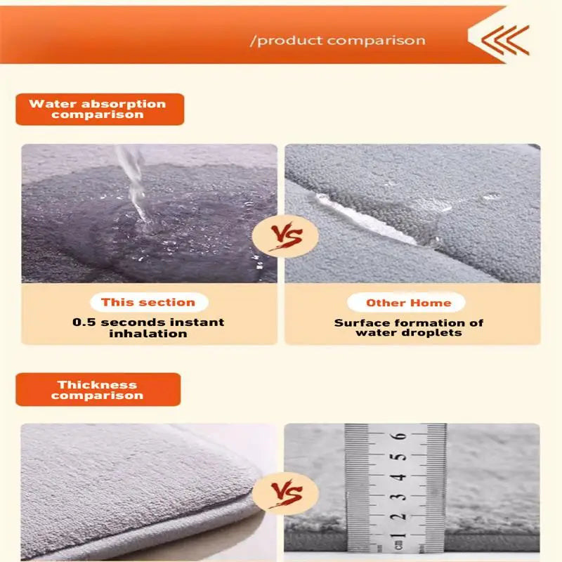 - Super Absorbent: Our unique microfiber material boasts exceptional moisture absorption, ensuring that water dries quickly and that your feet are protected from cold surfaces. Say goodbye to damp mats!